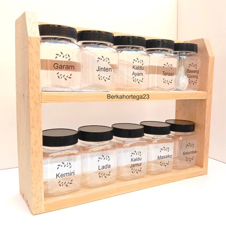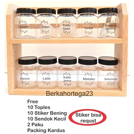 RAK BUMBU 2 SUSUN FREE TOPLES, SENDOK, STIKER TRANSPARAN YG BISA REQUEST NAMA2 BUMBUNYA RAK BUMBU RAK DAPUR