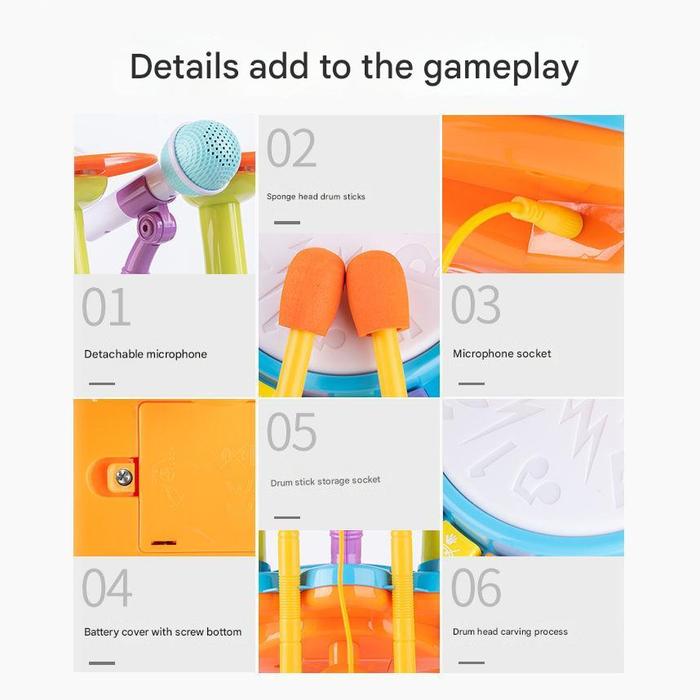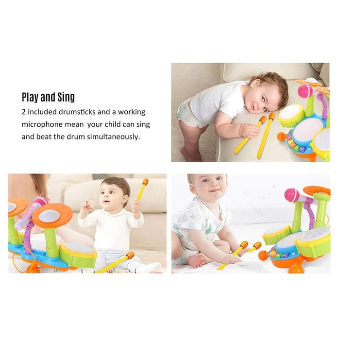 Mainan Anak Drum Keyboard Piano Xylophone Set Edukasi Alat Musik Elektrik Kado Ulang Tahun - Orange
