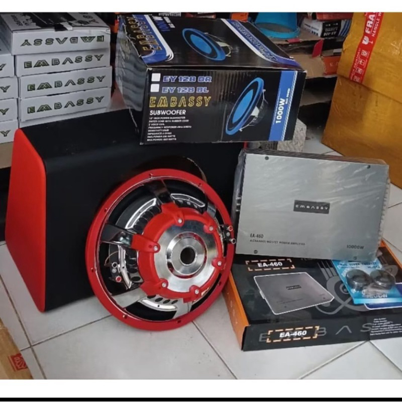 Paket Audio Mobil Power 4ch EMBASSY EA-460, Subwoofer EMBASSY EY-128 12inch,Box Speaker 12inch + Tweeter