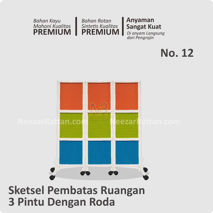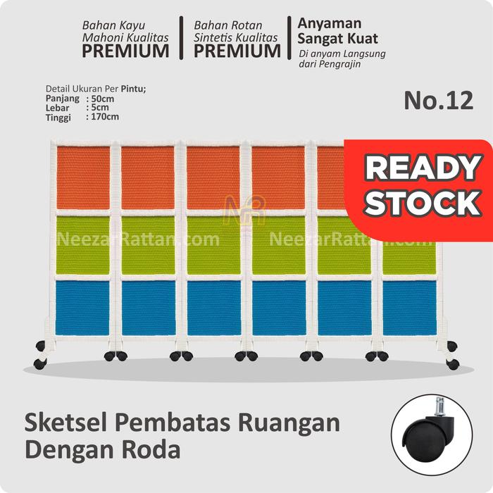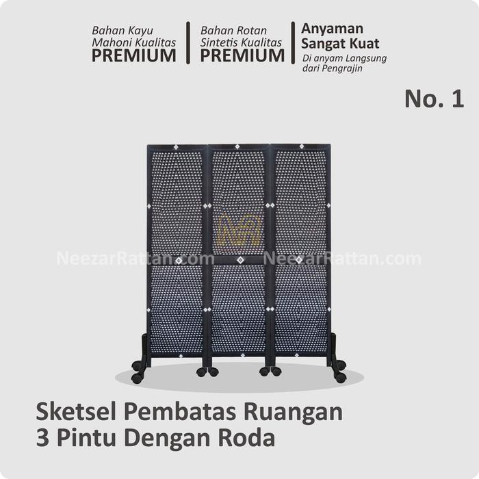 Neezar Rattan Pembatas Ruangan Sketsel Minimalis Unik Rotan Lipat Modern No 1 Kayu Mahoni Premium Anyaman Sintetis Kuat