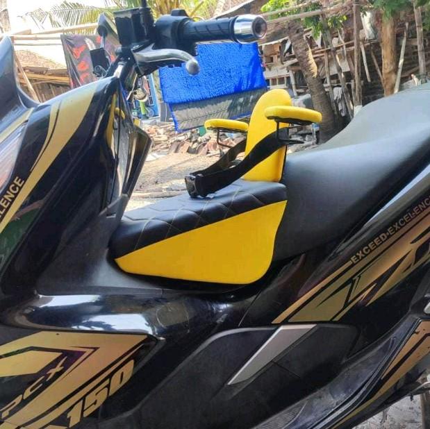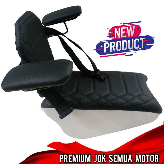 Premium Jok Boncengan Anak Semua Motor Pakai Seat Belt - Nmax Lama, Hitam List Putih