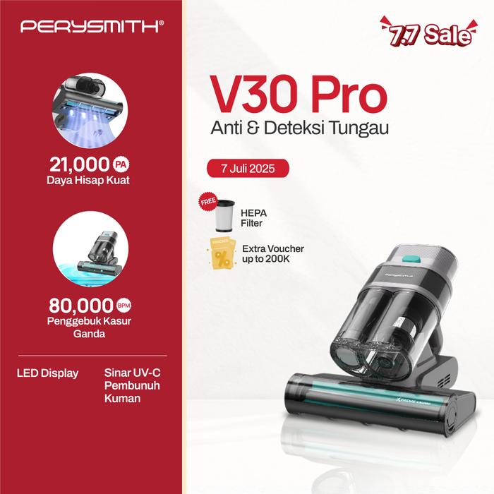 Perysmith V30 Pro Ultrasonic Double Dust Cup Anti Dust Mite Uv Vacuum Cleaner Penyedot Debu Tungau Mite Removal Instrume