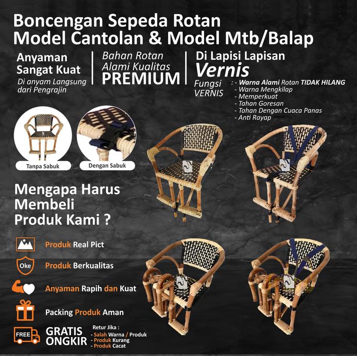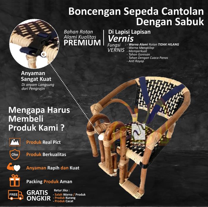 Kursi Boncengan Sepeda Anak Depan Mtb, Minion Murah Rotan Pakai Sabuk - Biasa+Sabuk