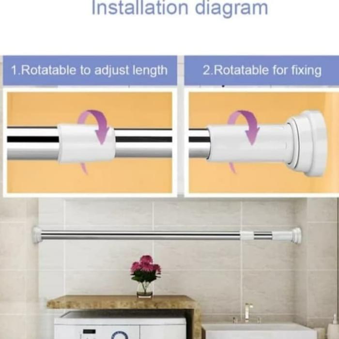Tiang Curtain Tiang Gorden Kamar Mandi Stainless /Tiang Tirai Toilet