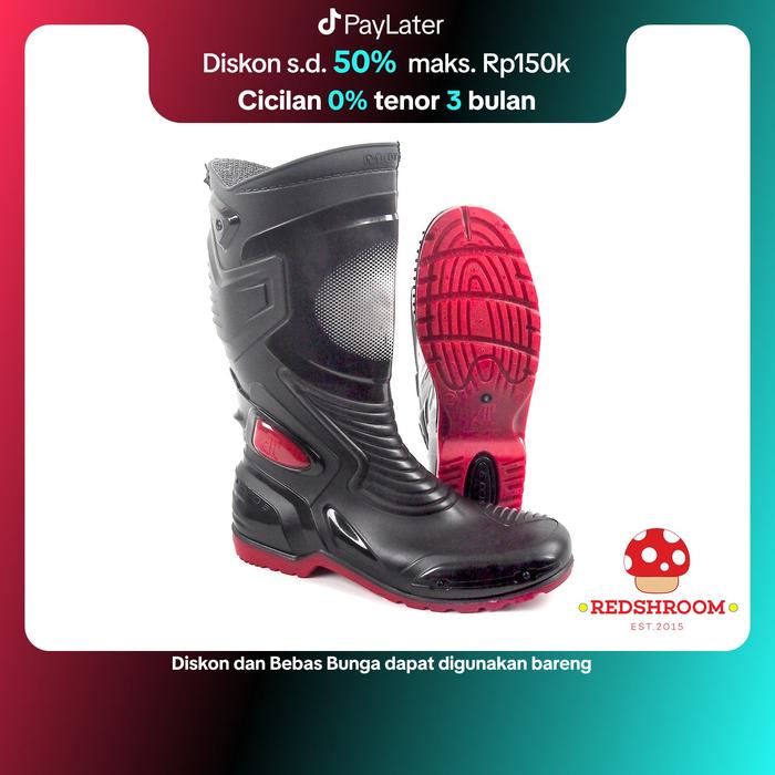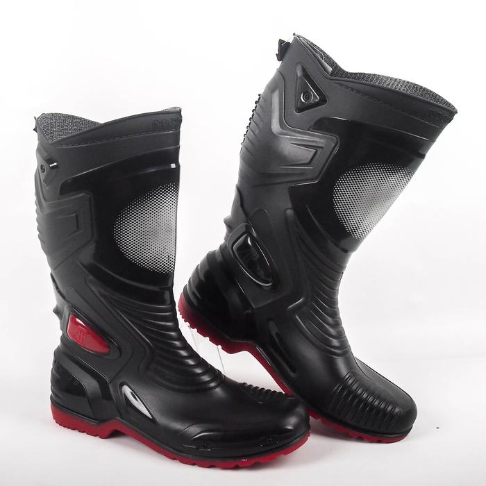 Sepatu Boot Tinggi Ap Boots Ap Moto 3 Hitam Merah Motor Karet Shoes - 38, Hitam/Merah