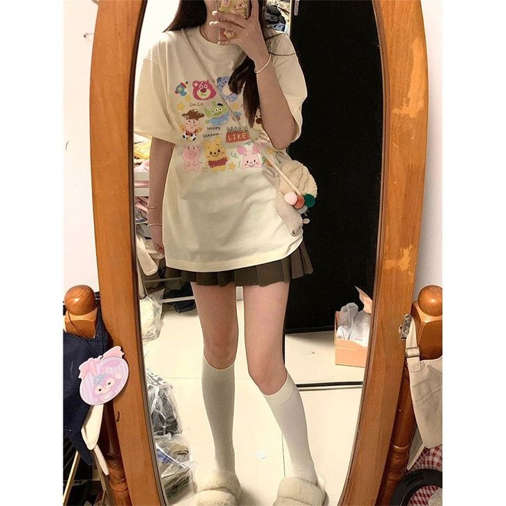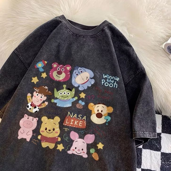 Jessica T-Shirt Washed Oversize Tigger And His Hood Friend | Baju Atasan Lengan Pendek Wanita Kaos Oversize Terbaru | K