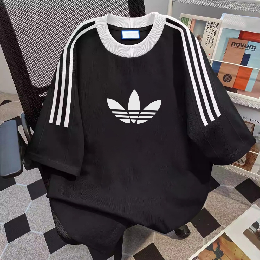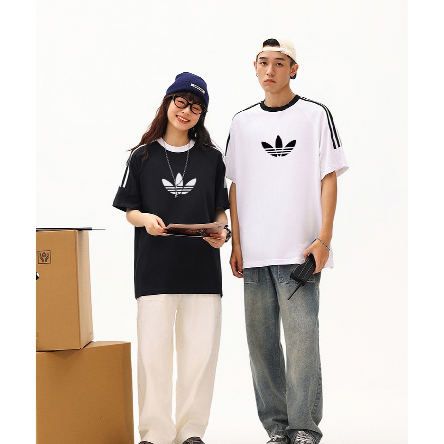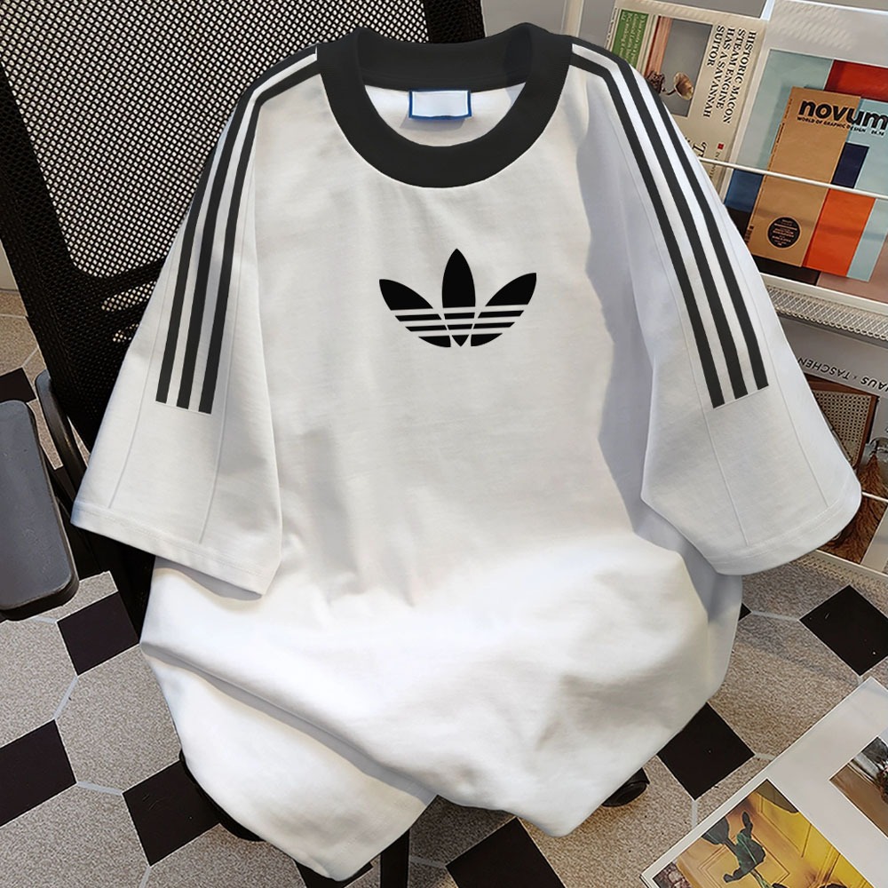 Versi Kasual Korea Kaos Pria Dicetak Tiga Garis Kaos Lengan Pendek Pria Lengan Pendek Atasan Putih Kaos Termurah Oversize Pria Atasan Pria