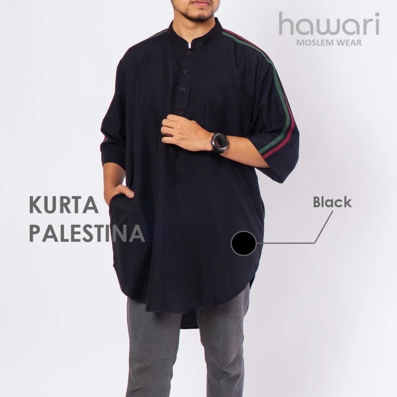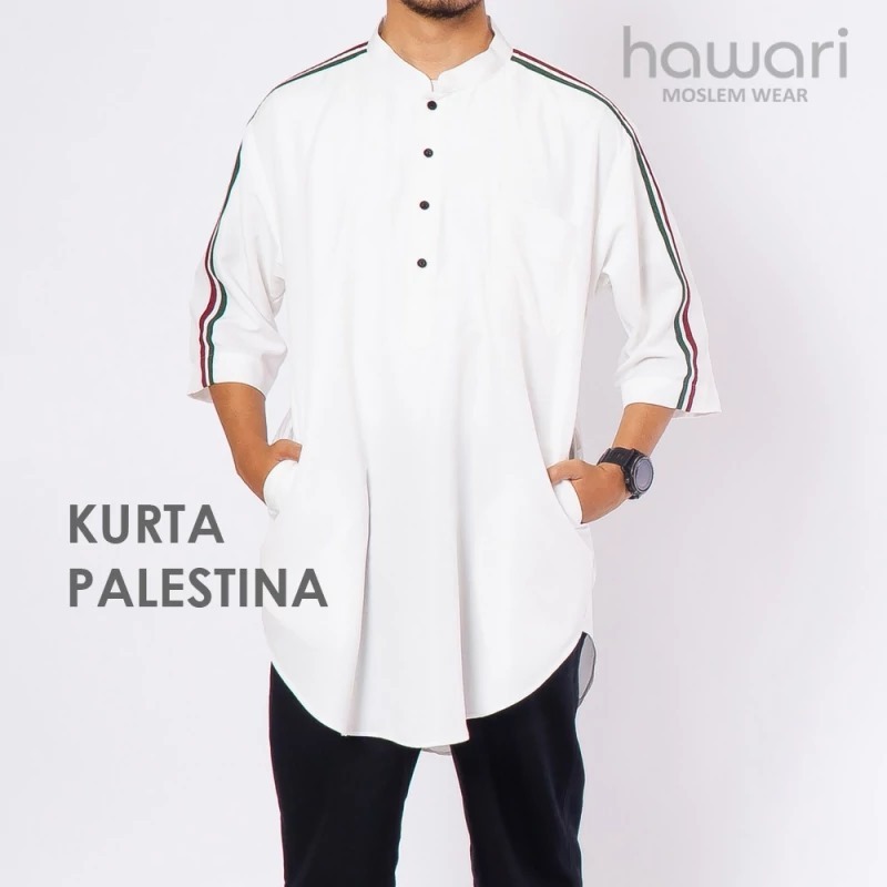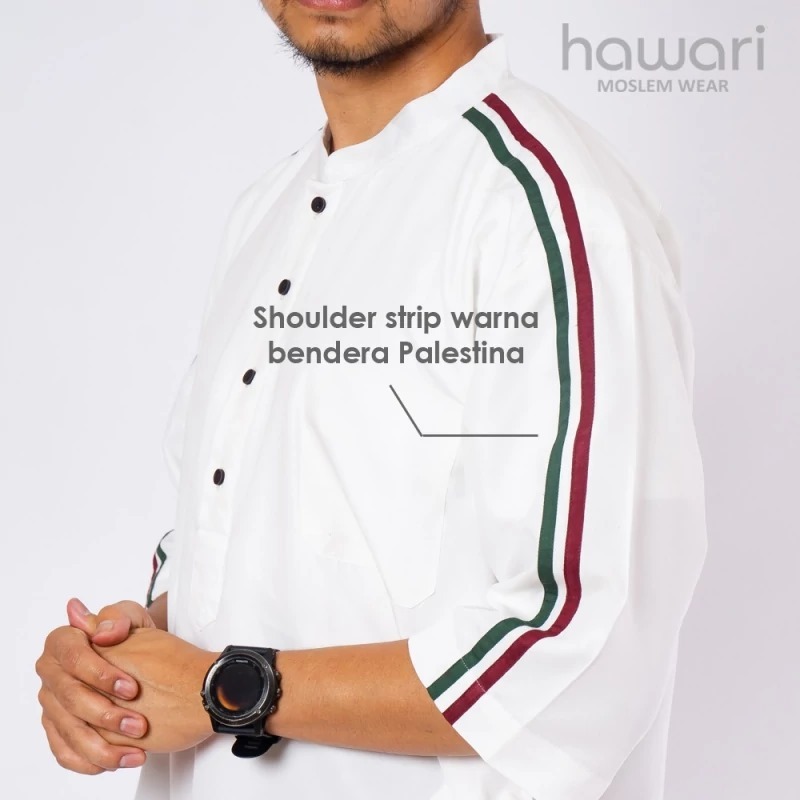 Baju Koko Kurta Palestina Pria Dewasa - Jumbo Big Size XXXL - Palestine Flag Shoulder Strip