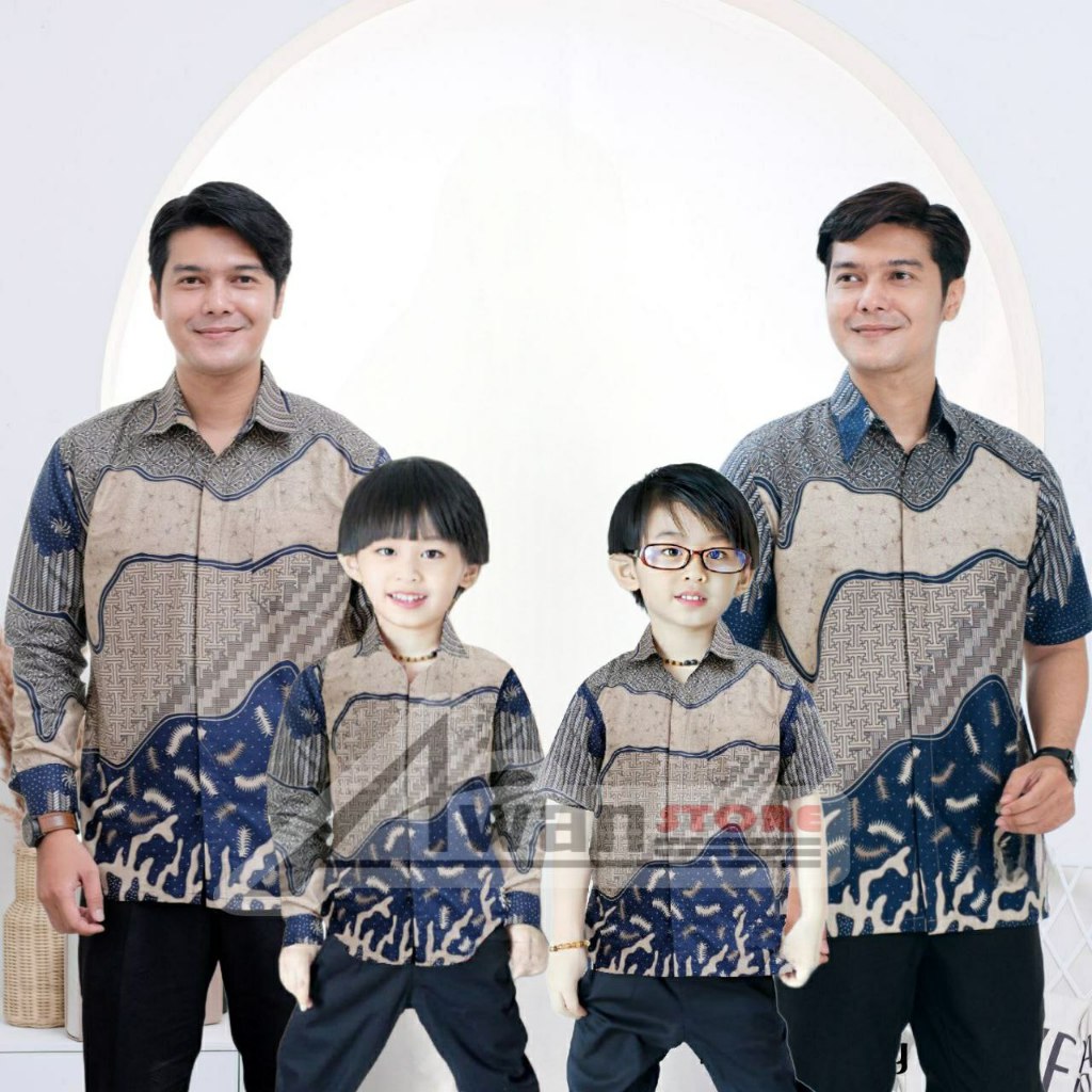 Terbaru Batik Inara Kemeja Batik Ayah dan Kemeja Batik Anak Cowok Batik Warna Biru Dongker Navy
