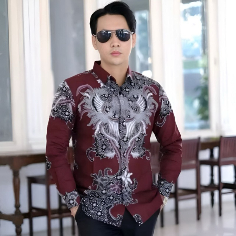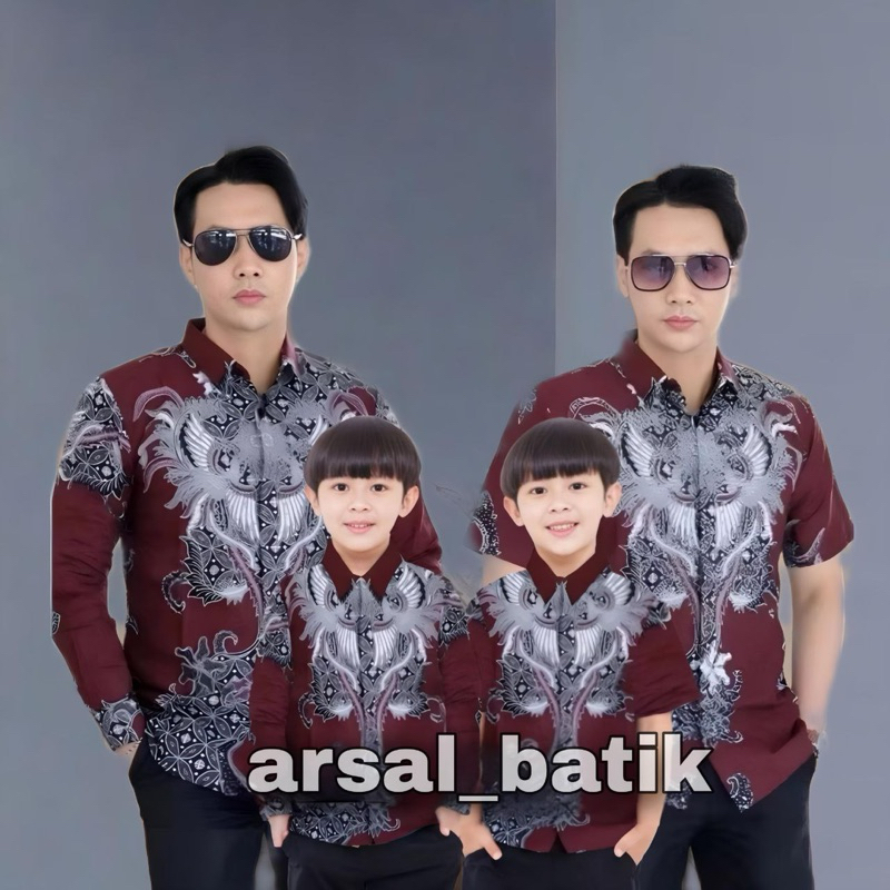 Terbaru Couple Kemeja Batik Ayah dan Anak Warna Maroon Burgundy