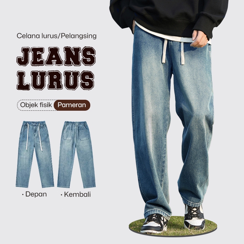 Celana Panjang Jeans Pria Denim Style Vintage Pinggang karet Celana Gombrang Pria Jeans Cowok Dewasa Jeans Kulot Jumbo Korean Style Baggy Pants Straight Pants