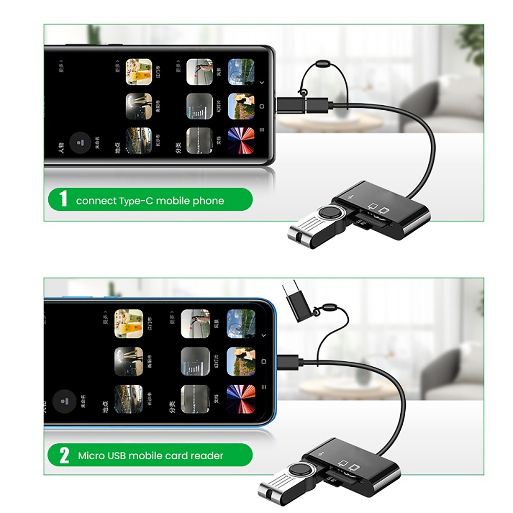 Actual Card Reader 3 in 1 OTG Type-C Micro SD/TF Flash Drive Card Reader Data Reader Cable Card Reader Adaptor Laptop Data Transfer