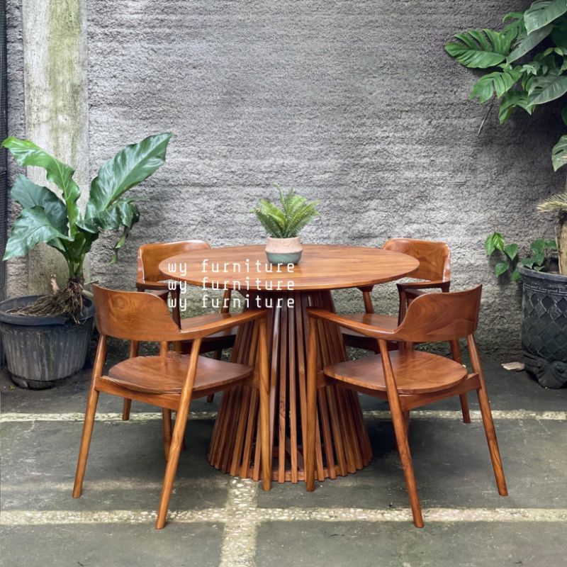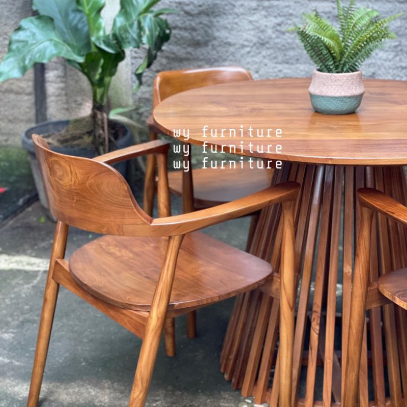 set meja makan 4 kursi kayu jati, meja makan bulat 4 kursi kayu jati, meja makan murah kayu jati