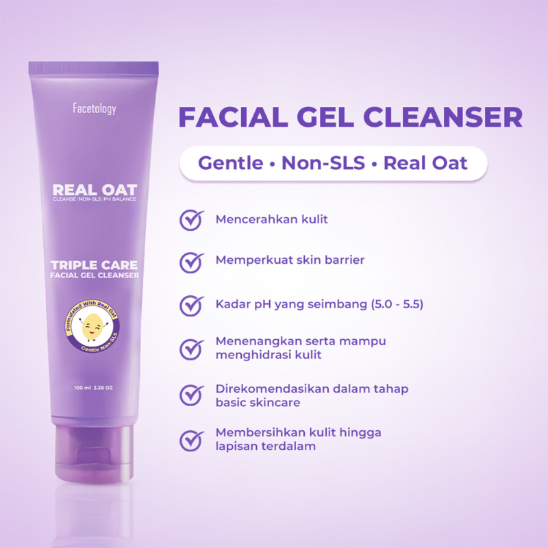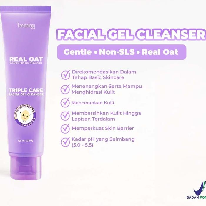 [BPOM] Facetology TripleCare Facial Gel Cleanser Sabun Cuci Muka Gentle Low PH Oat Senstive skin All skin Types 100ml