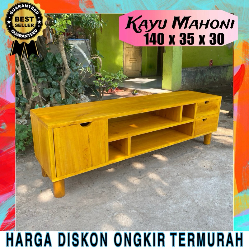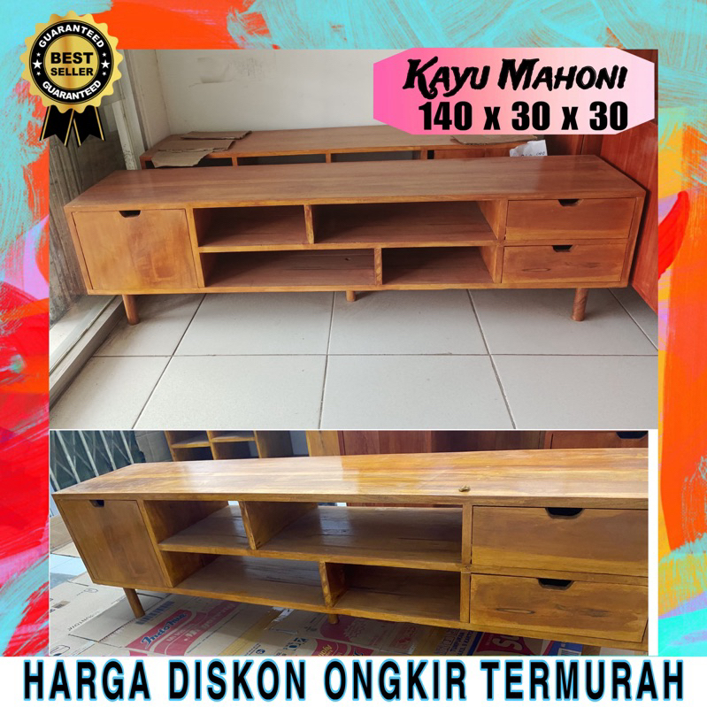 Ready Stock Meja TV Kayu Mahoni 140cm Minimalis Modern