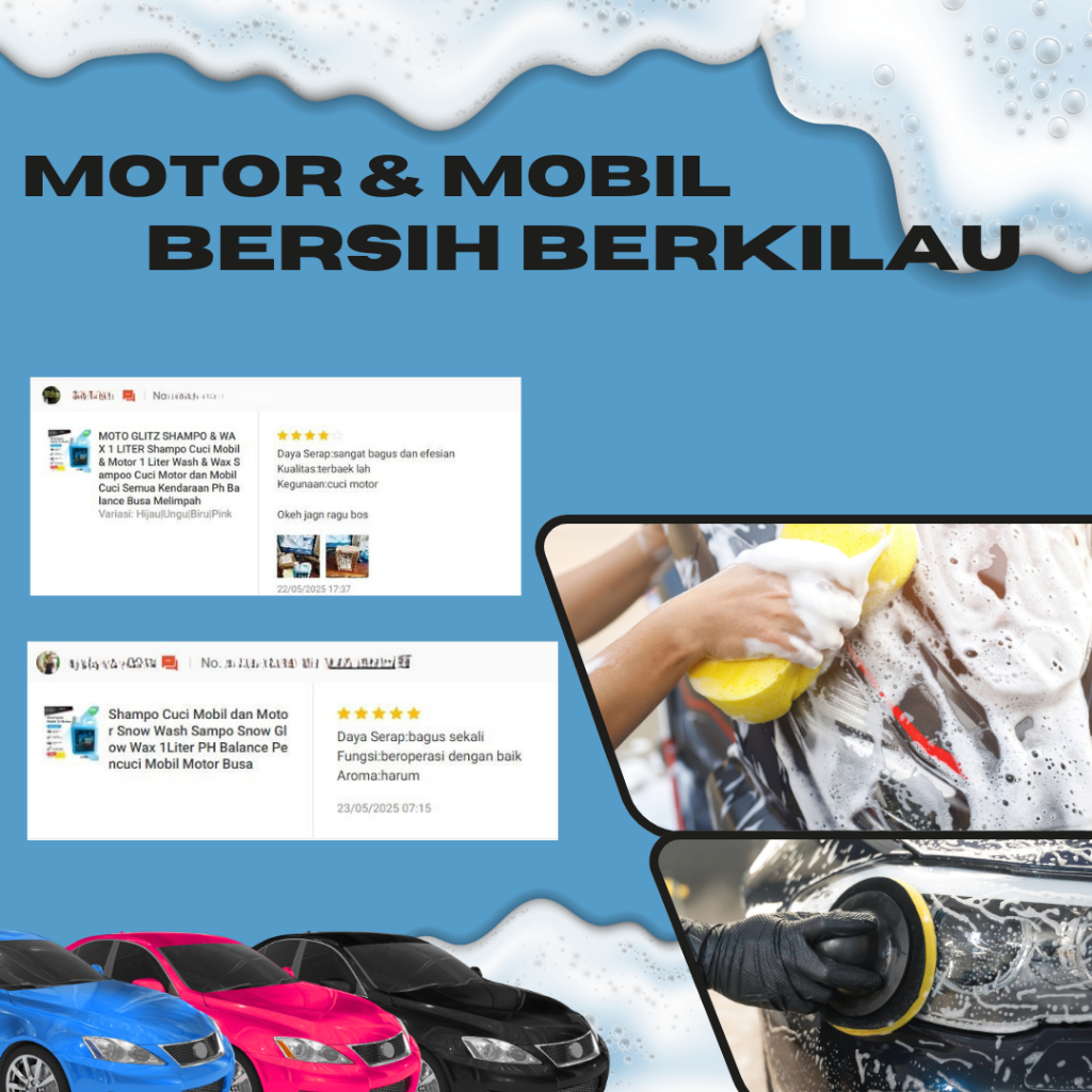 Shampo Cuci Mobil dan Motor Snow Wash Sampo Snow Glow Wax 1Liter pH Balance Pencuci Mobil Motor Busa