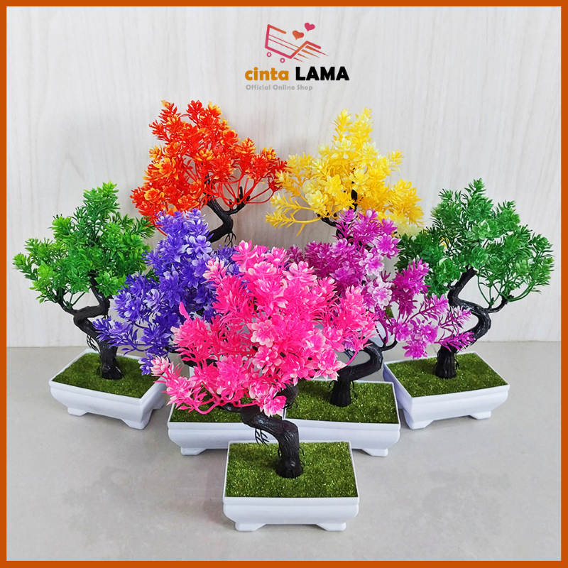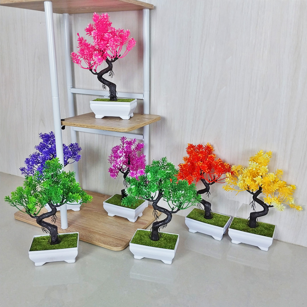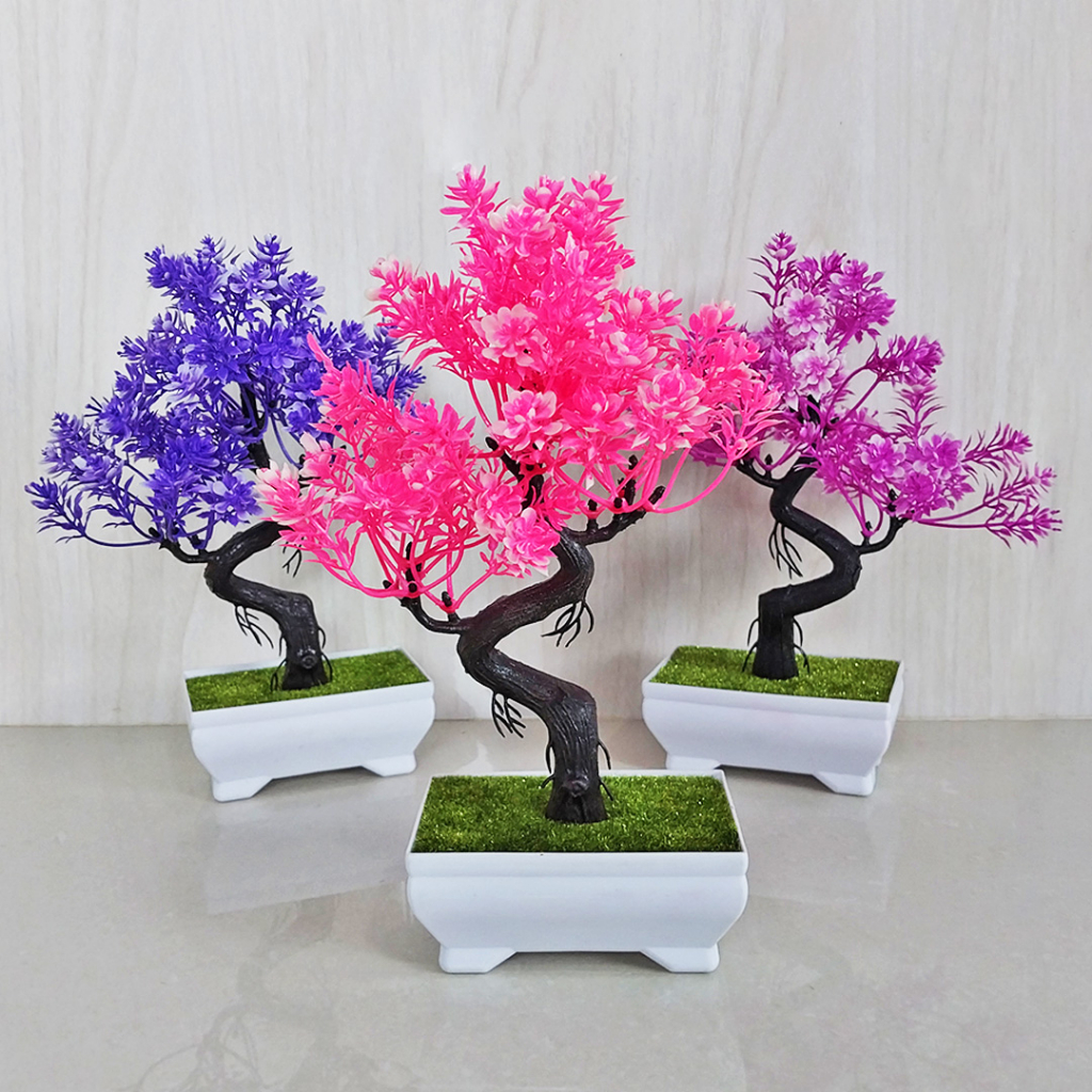 Tanaman Bunga Hias Plastik Pot Bonsai Sintetis Artificial Ornamen Dekorasi Rumah Kamar Import Murah PBP04