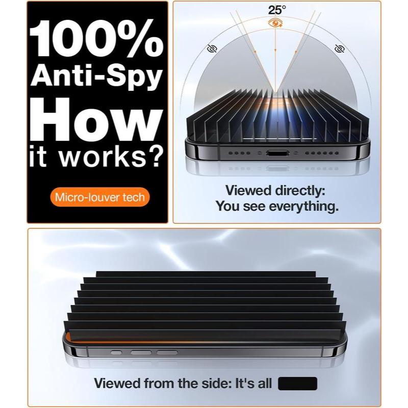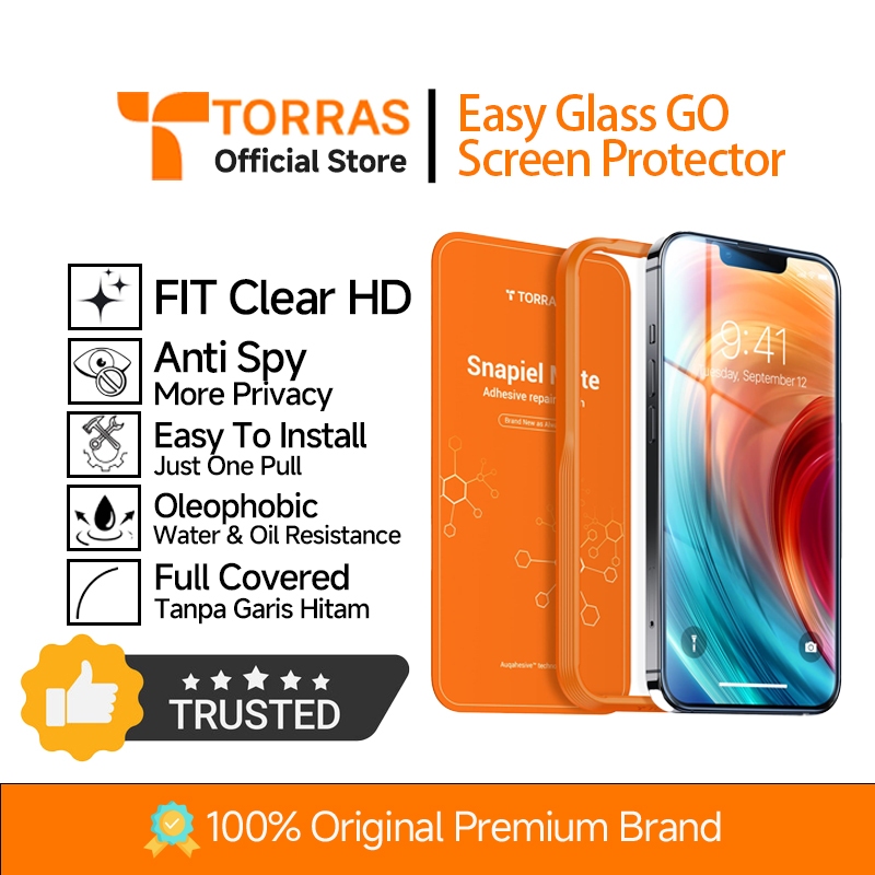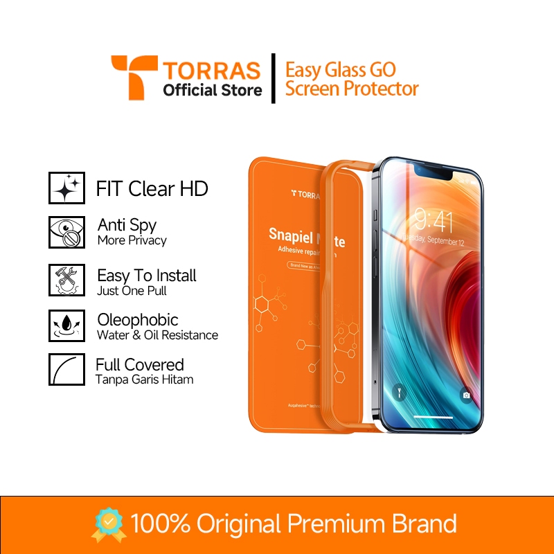 TORRAS Tempered Glass iPhone 13 14 15 16 Pro Max Anti Gores Spy Ultra Clear HD Full Tanpa List Hitam