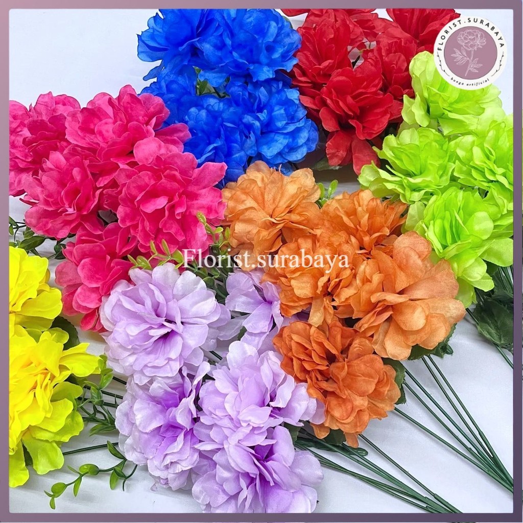 Bunga Anyelir Carnation Tipe SJ Cabang 5 Artificial/Pompom Buatan Home Decor Hiasan Weding Pelaminan