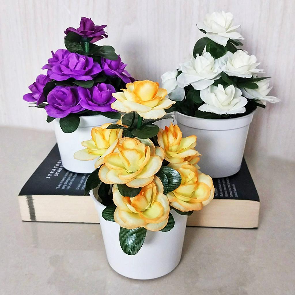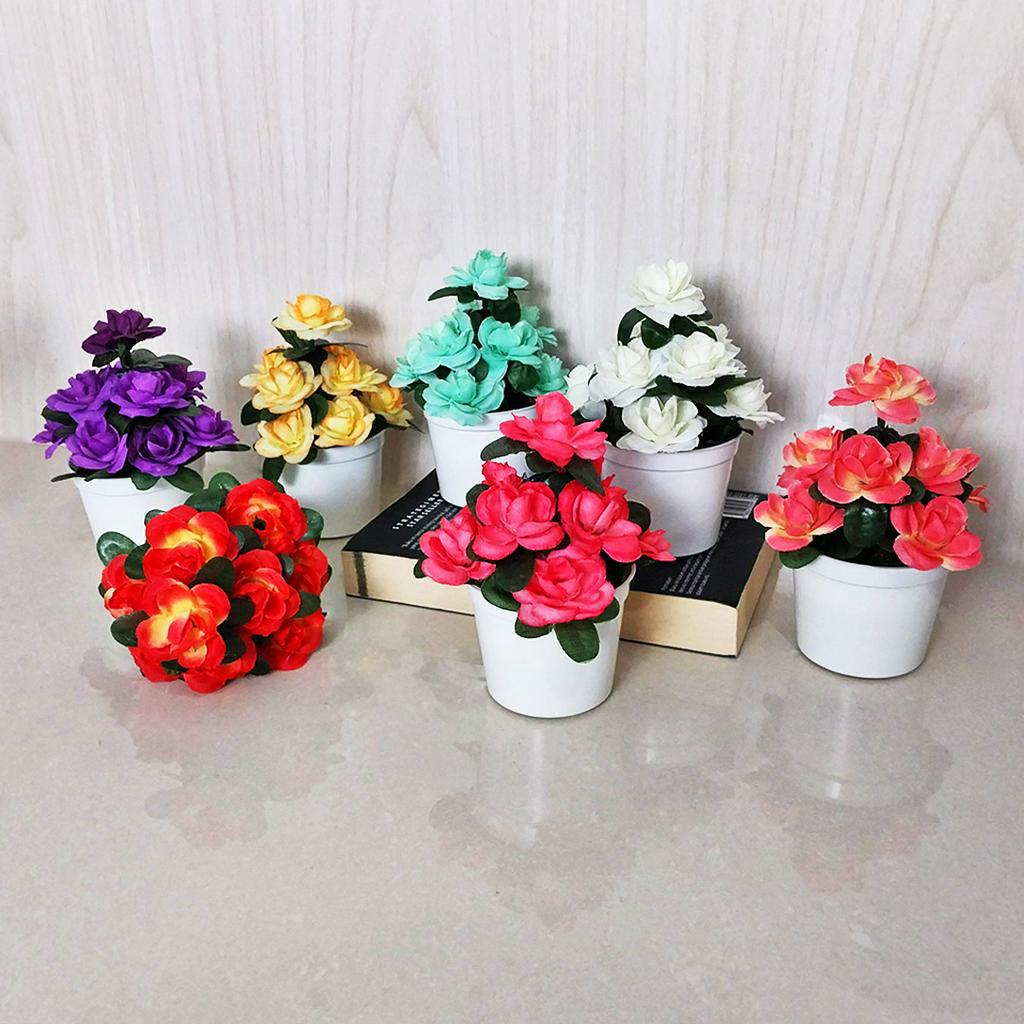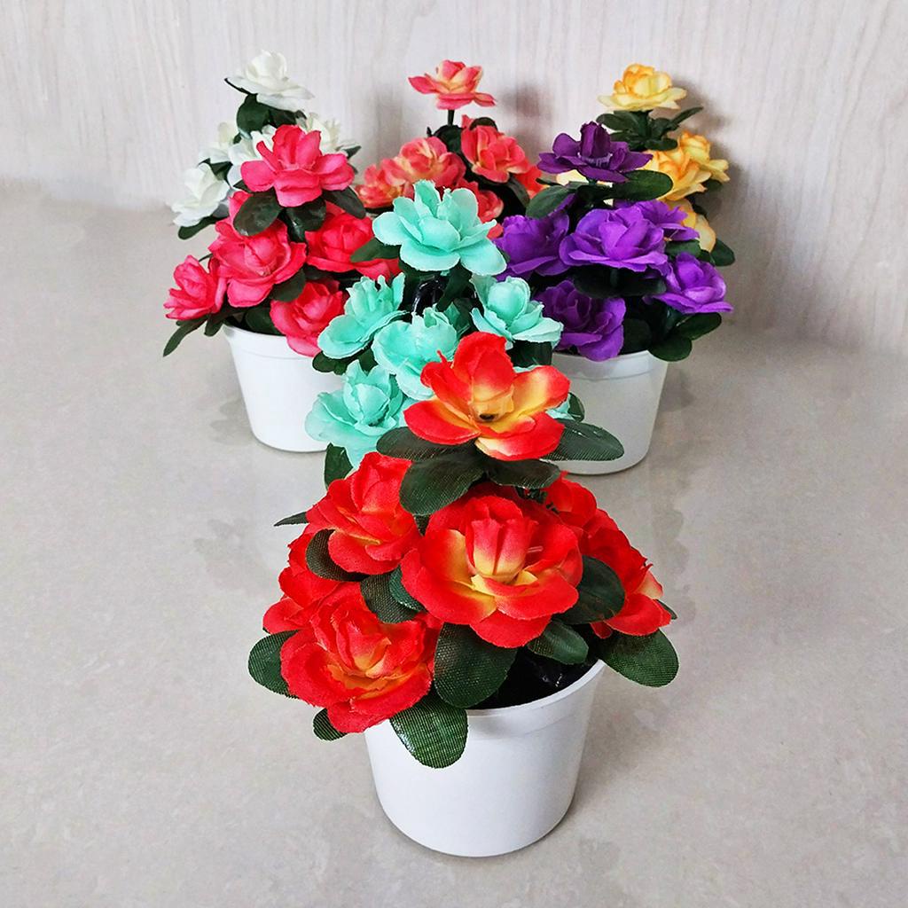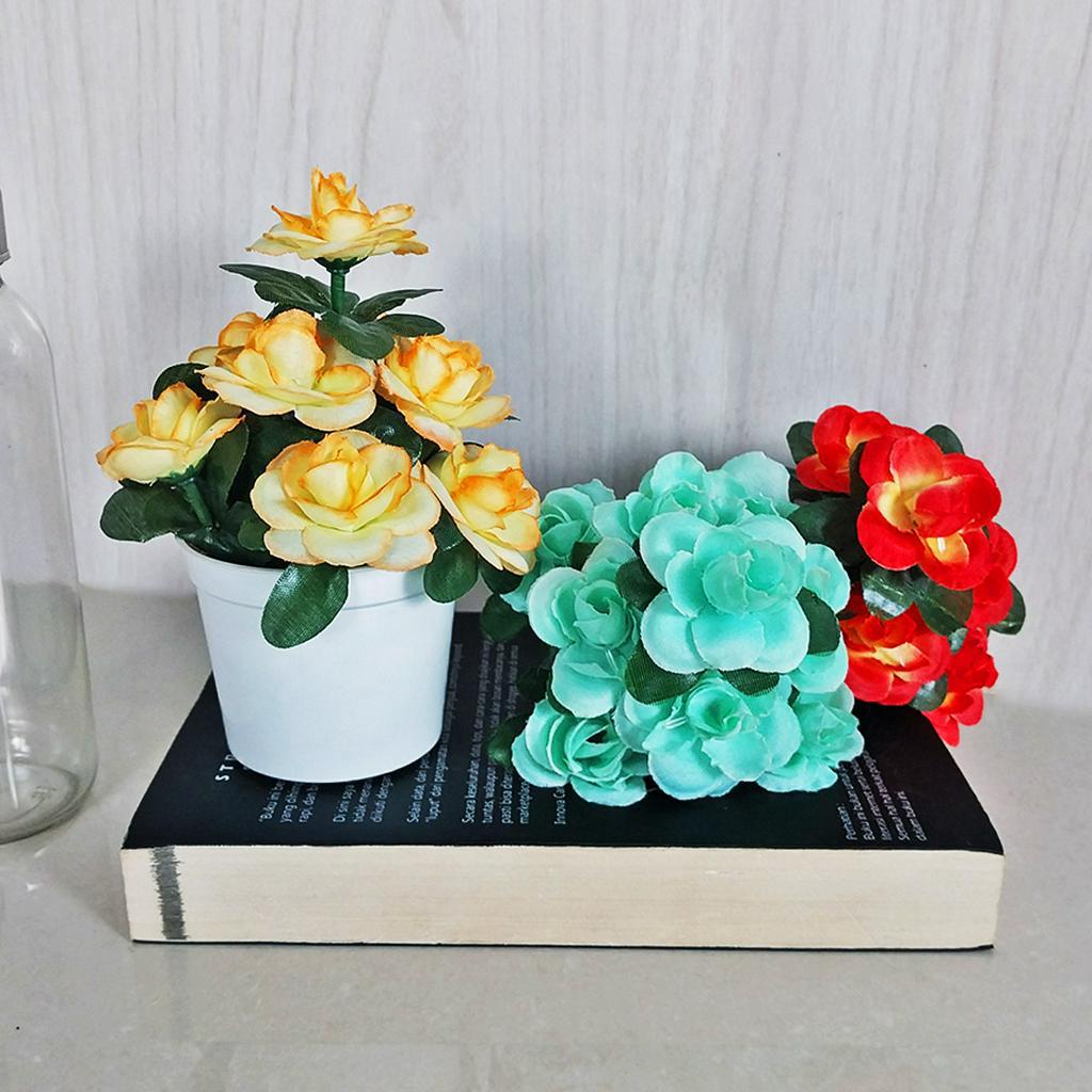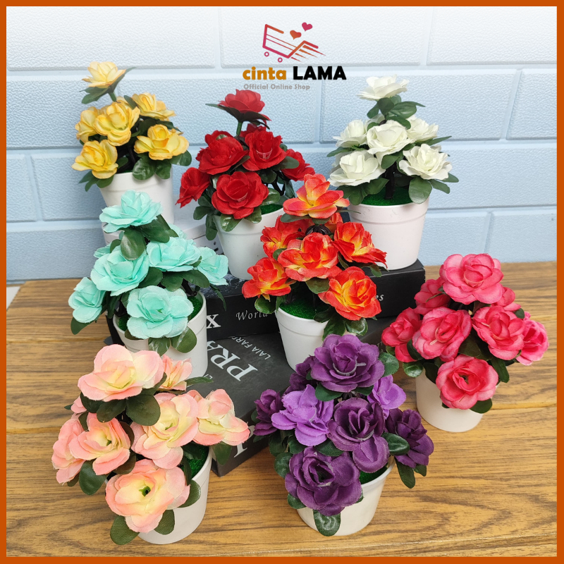 Bunga Hias Plastik Pot Mini Tanaman Mawar Artificial Flower Ornamen Kembang Dekorasi Rumah Import Murah PBP107