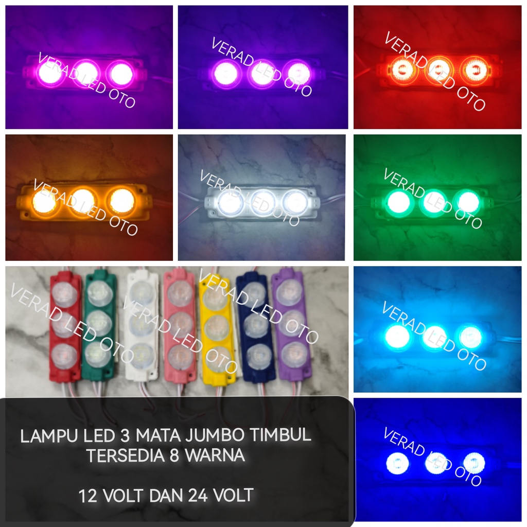 Modul Led Lampu Kolong Mobil Motor Truk Lampu 3 Mata Jumbo Timbul Besar 7520 3030 3W 12V 24V Variasi