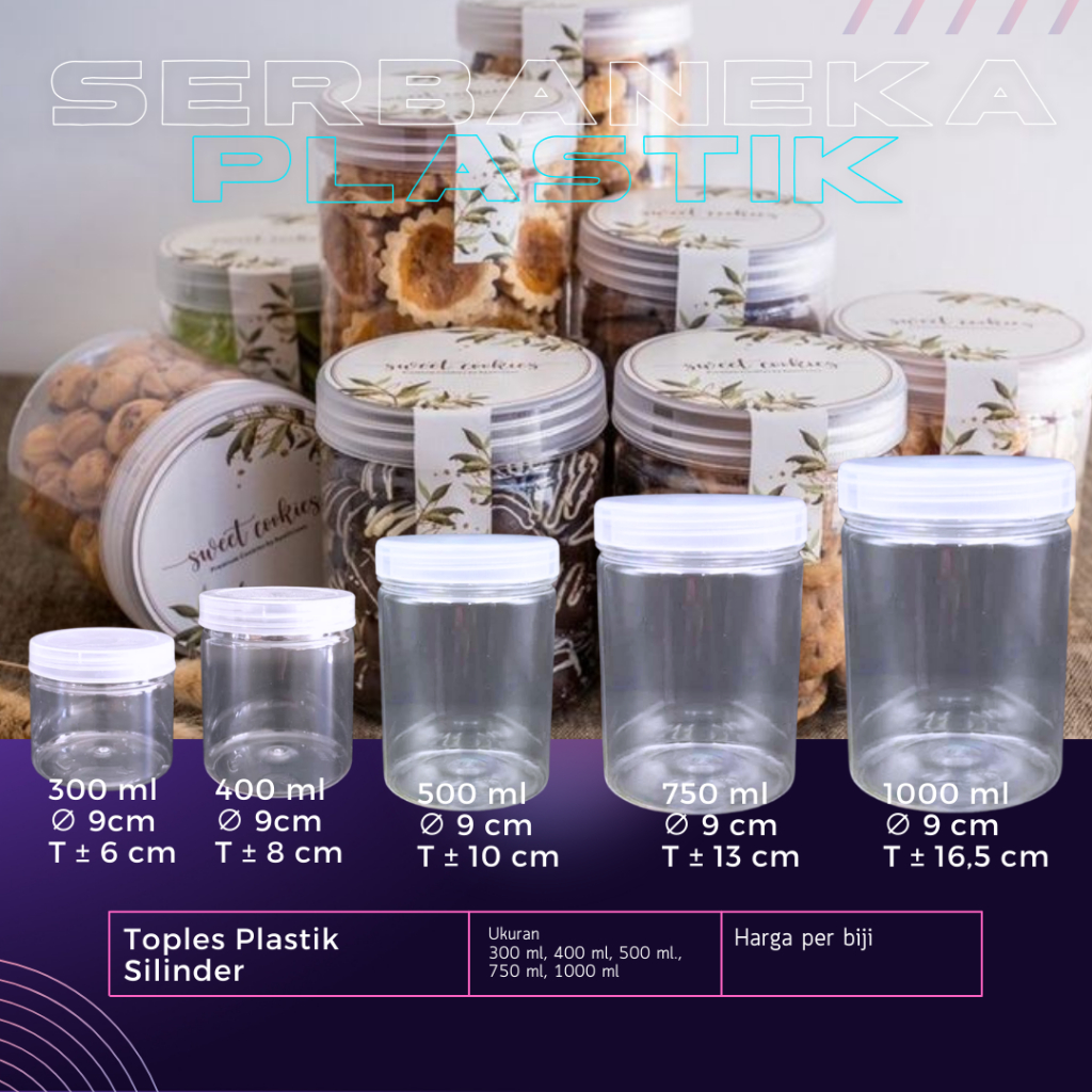 Toples Plastik Bulat Bening / Pet Jar Kue Kering 300 ml s/d 1000 ml per 1 pc