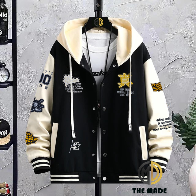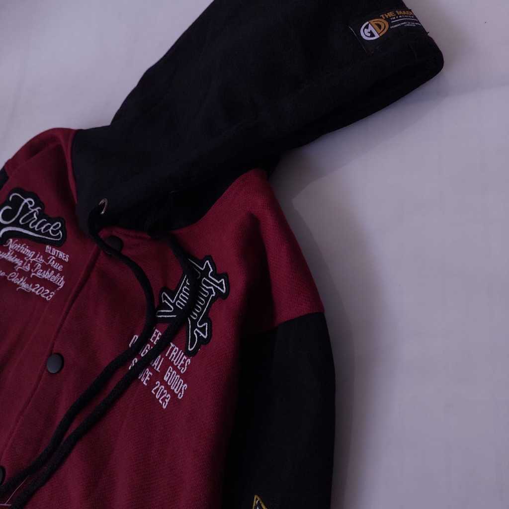 Jaket Varsity Baseball Full Bordir Kupluk - Jaket Varsity Hoodie Vintage Pria Wanita Terbaru Full Label Full Tag bahan T