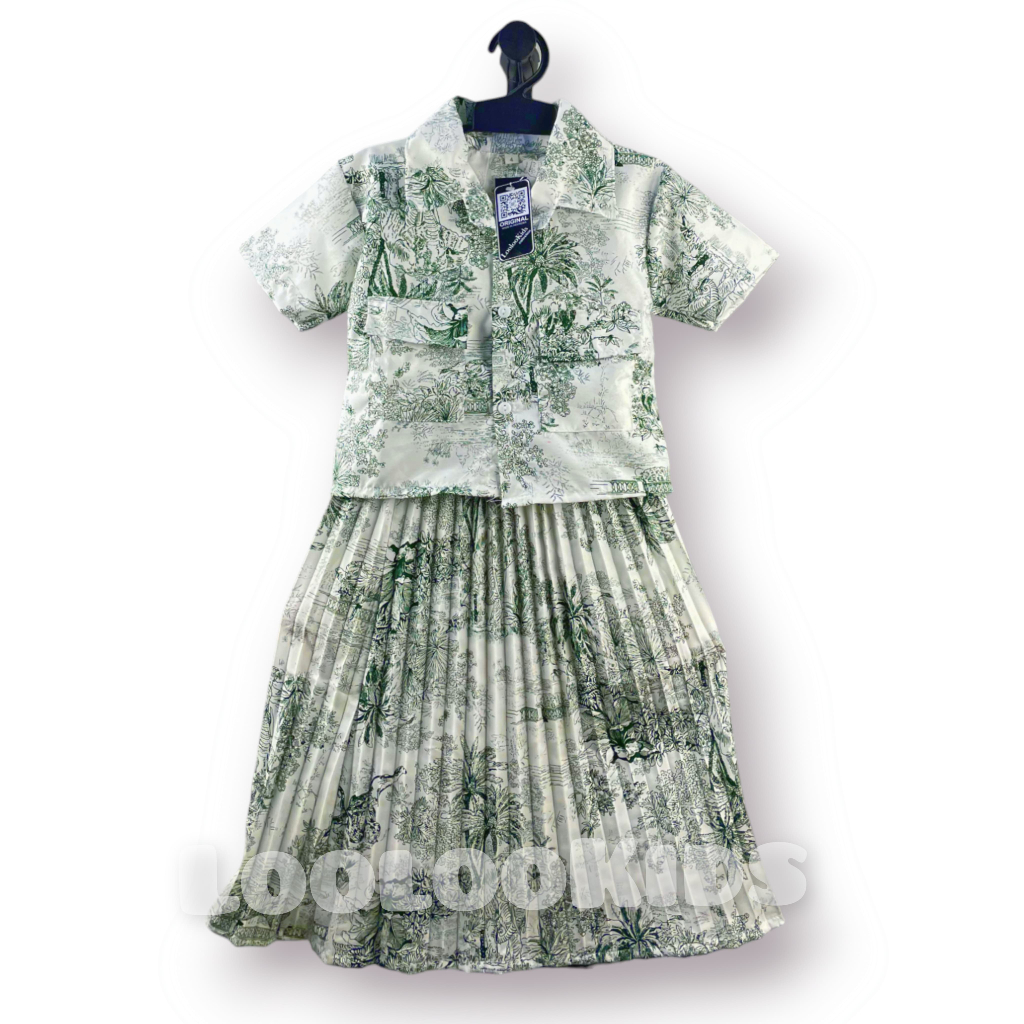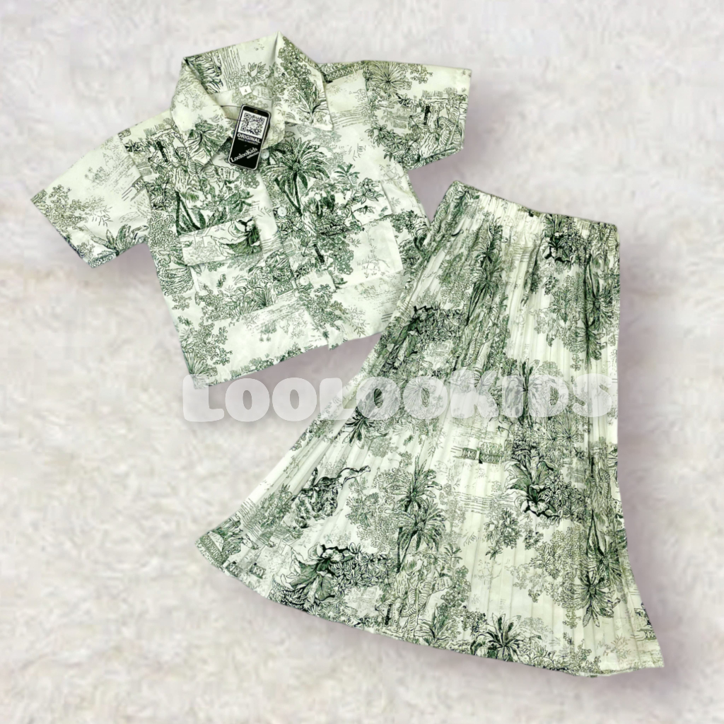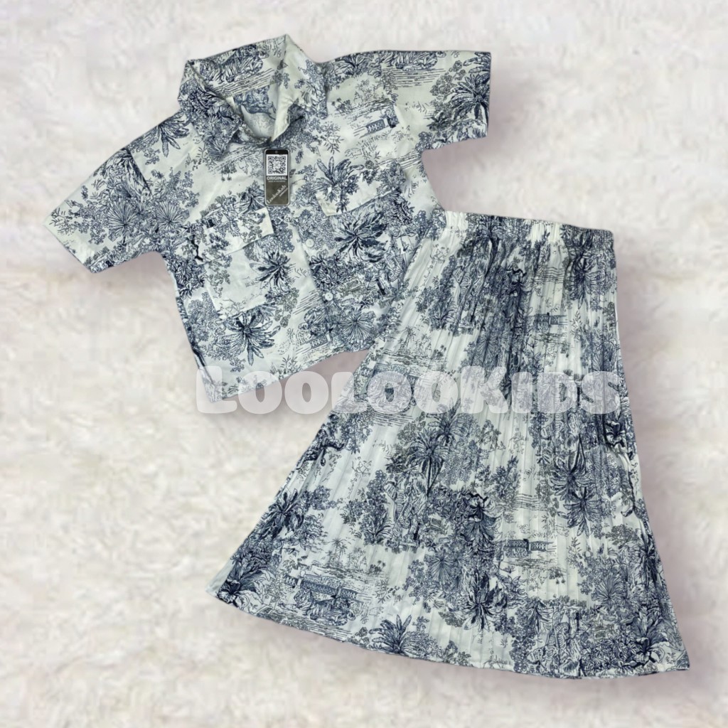 Setelan Crop Korean Fuji Anak Perempuan Usia 1-9 Tahun - One Set Rok Plisket Baju Wanita Model Terbaru - Stelan Kameja Cewek Viral