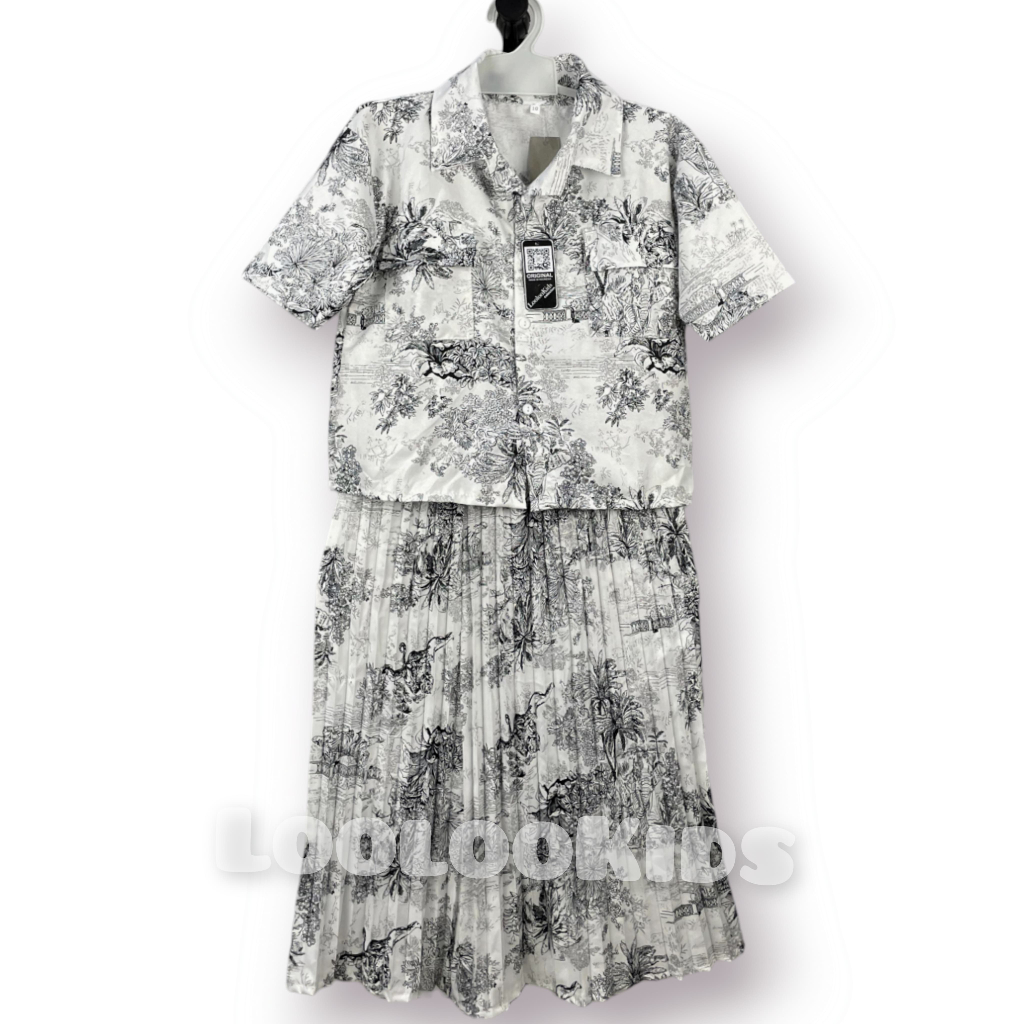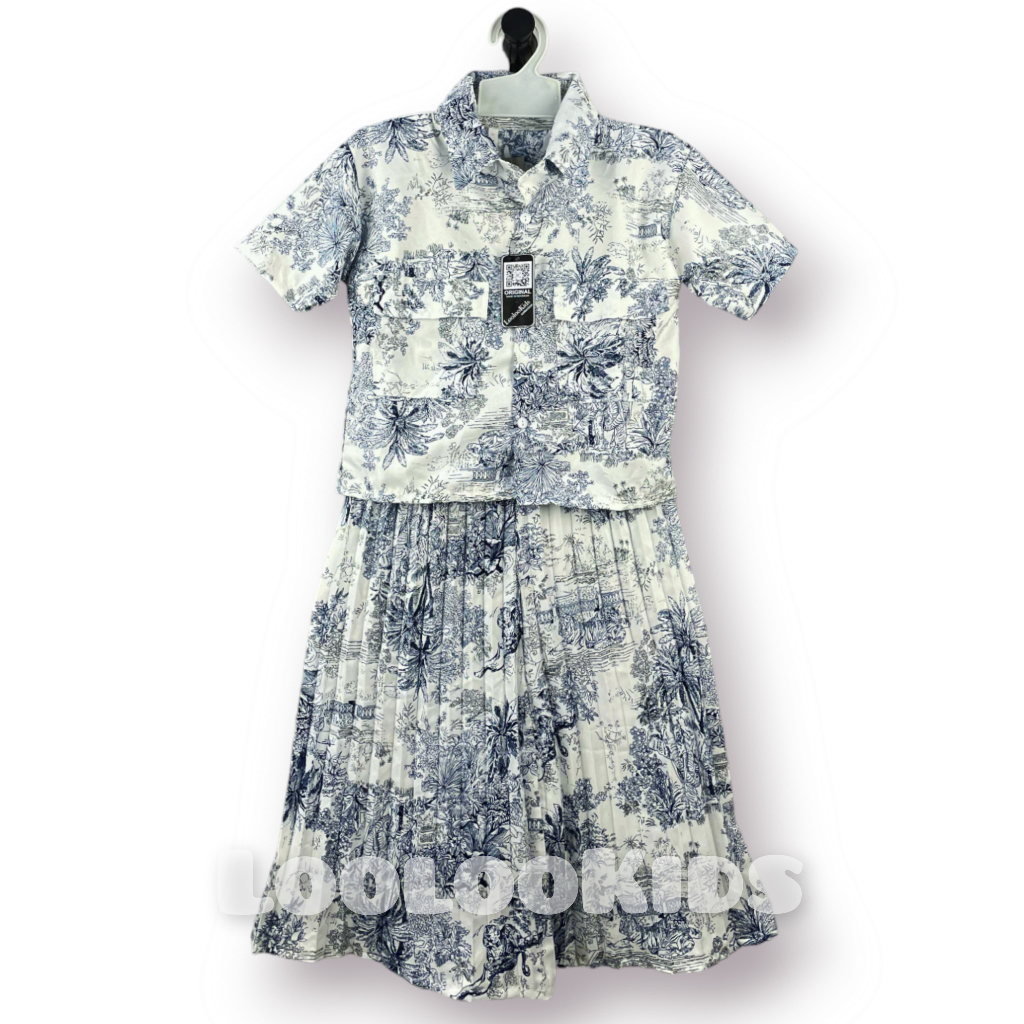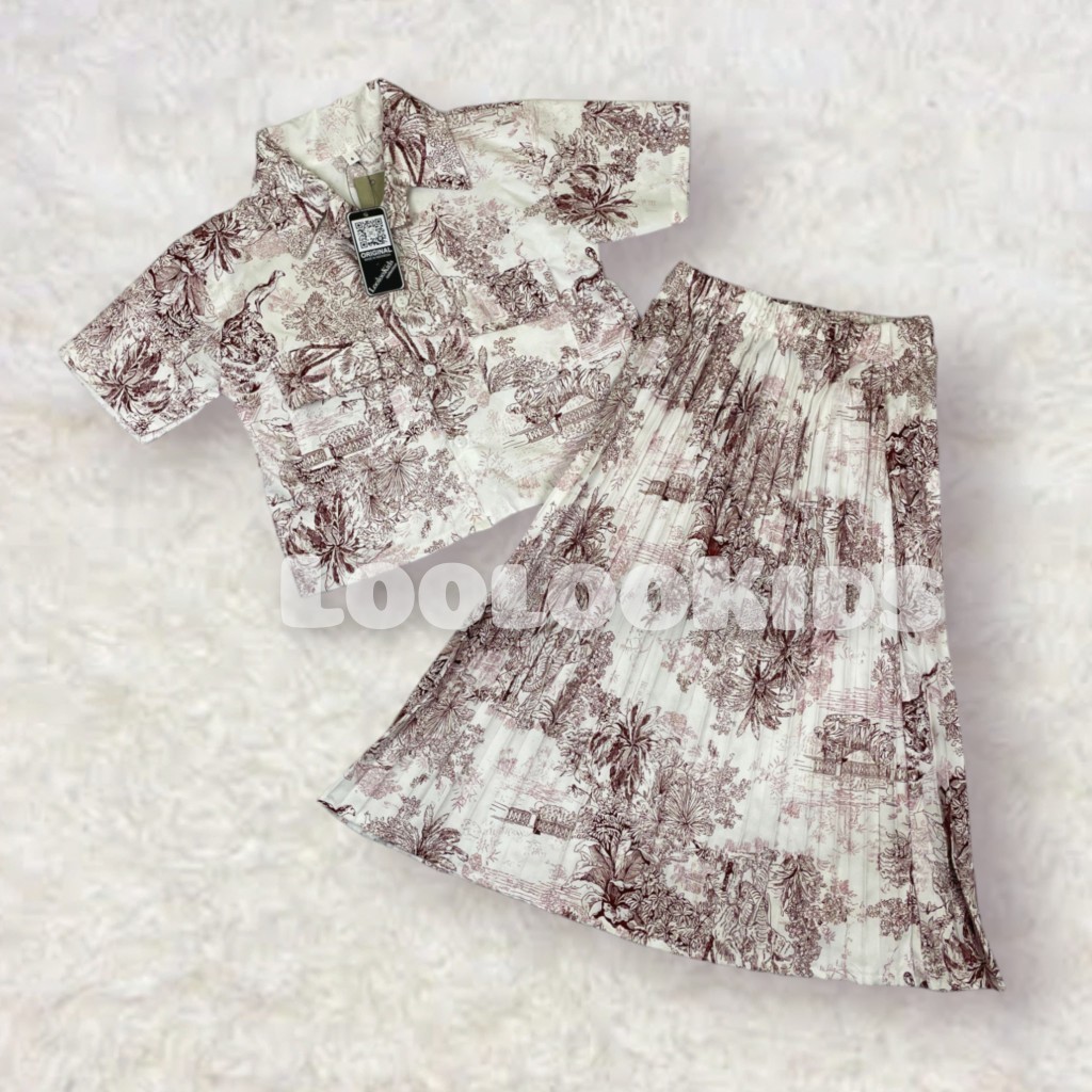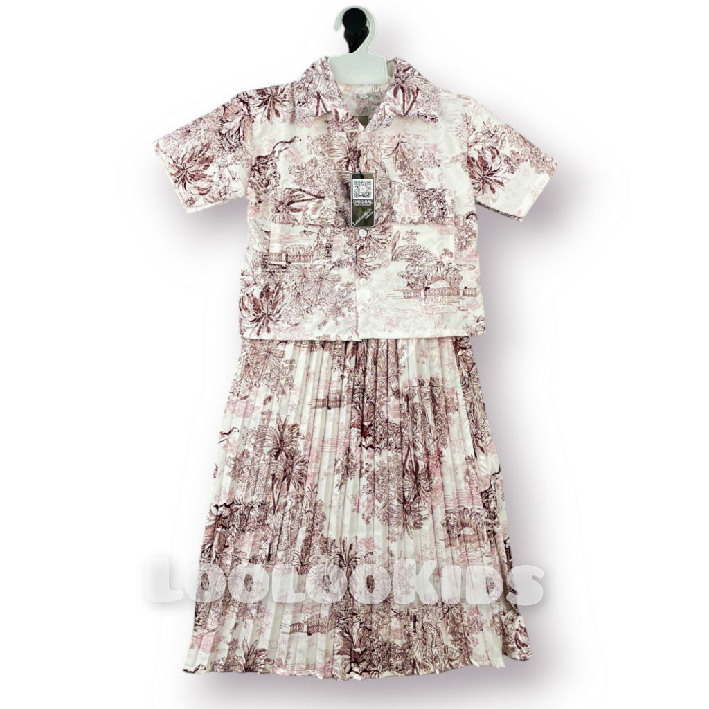 Setelan Crop Korean Fuji Anak Perempuan Usia 1-9 Tahun - One Set Rok Plisket Baju Wanita Model Terbaru - Stelan Kameja Cewek Viral
