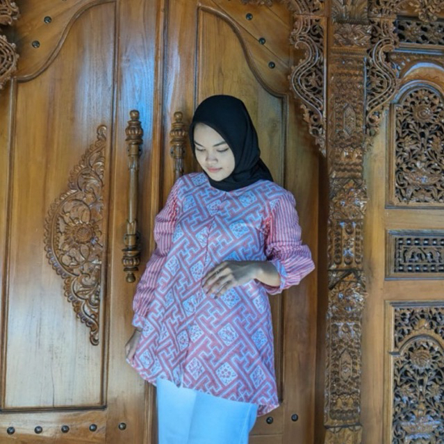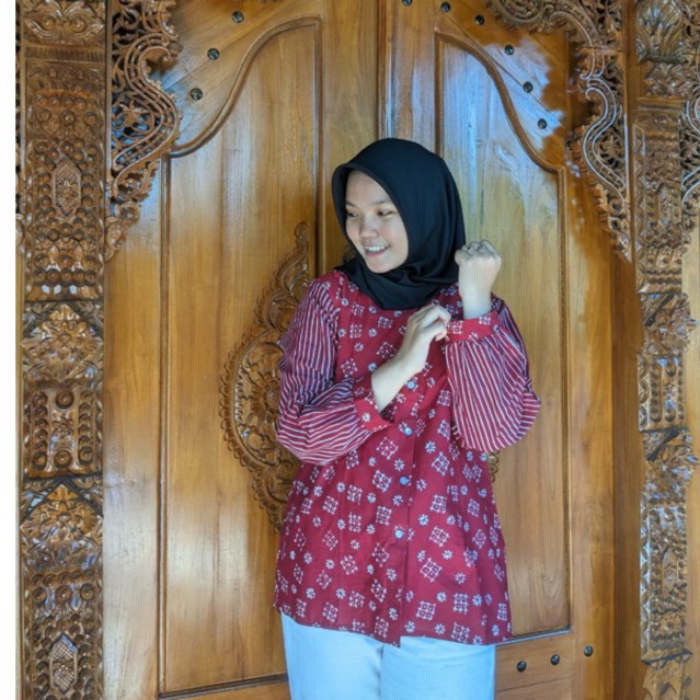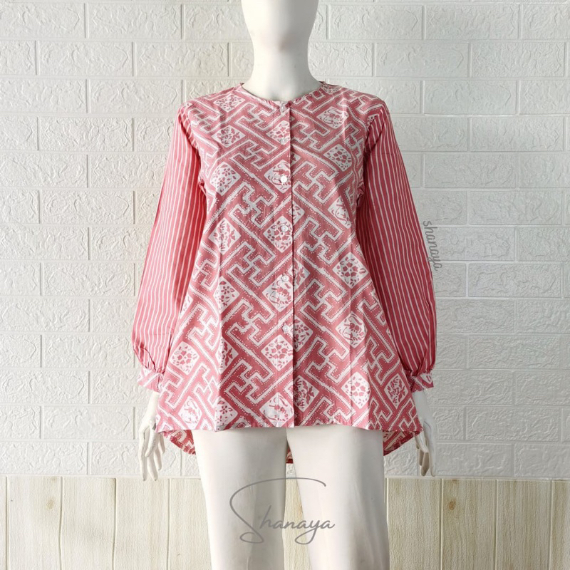 Shanaya Baju Batik Wanita Blus Rukaya Batik Full Kancing Lengan Panjang Batik Kekinian Batik Cap Modern Batik Kerja Kuliah Kondangan Batik Wanita