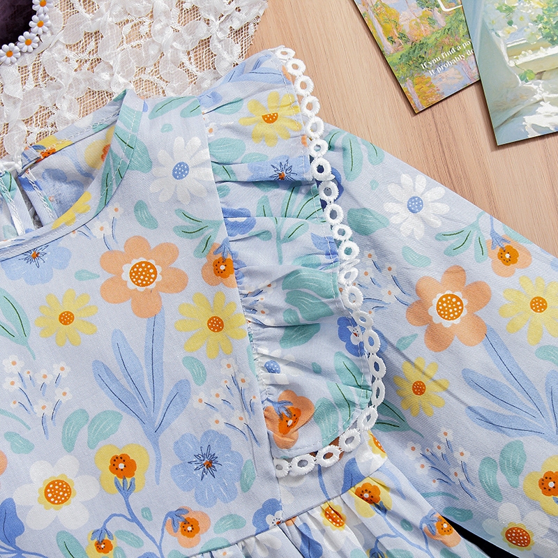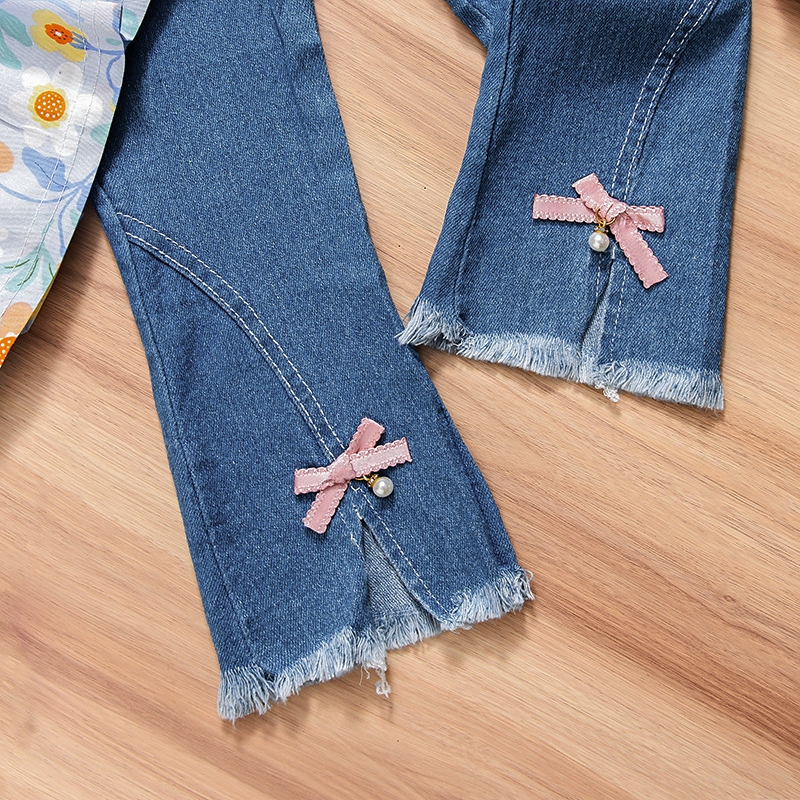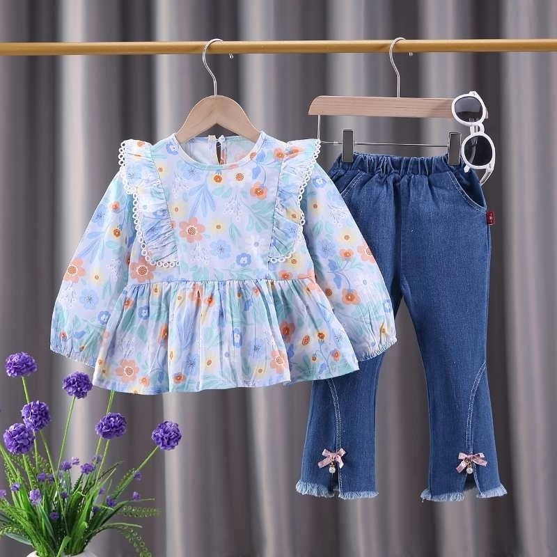 RAINBOW Setelan Anak Perempuan Lengan Panjang Motif Bunga Bahan Jeans Motif Katun Premium Baju Anak
