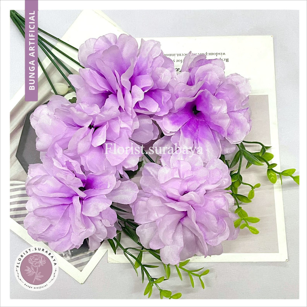 Bunga Anyelir Carnation Tipe SJ Cabang 5 Artificial/Pompom Buatan Home Decor Hiasan Weding Pelaminan