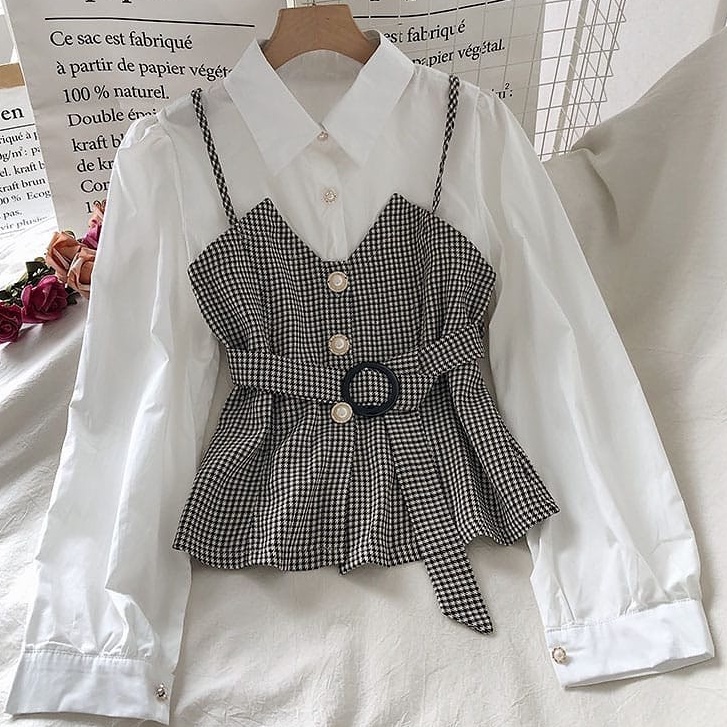 ⭐️ Vita Blouse Plaid Vest Premium Korean Fit L ⭐️ Atasan Remaja Muslim Wanita Kekinian Termurah ⭐️⭐️