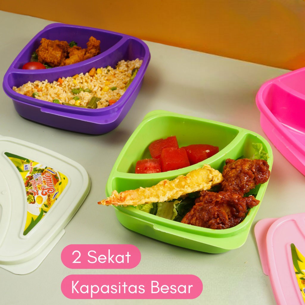 HC LUNCH BOX SMILE 2 SEKAT KOTAK MAKAN ANTI TUMPAH LUNCH BOX ANAK TK SEKOLAH TEMPAT BEKAL CATERING KANTORAN TEPAK MAKAN