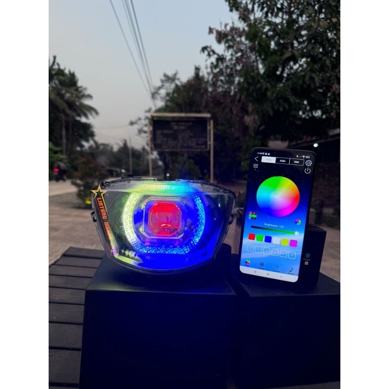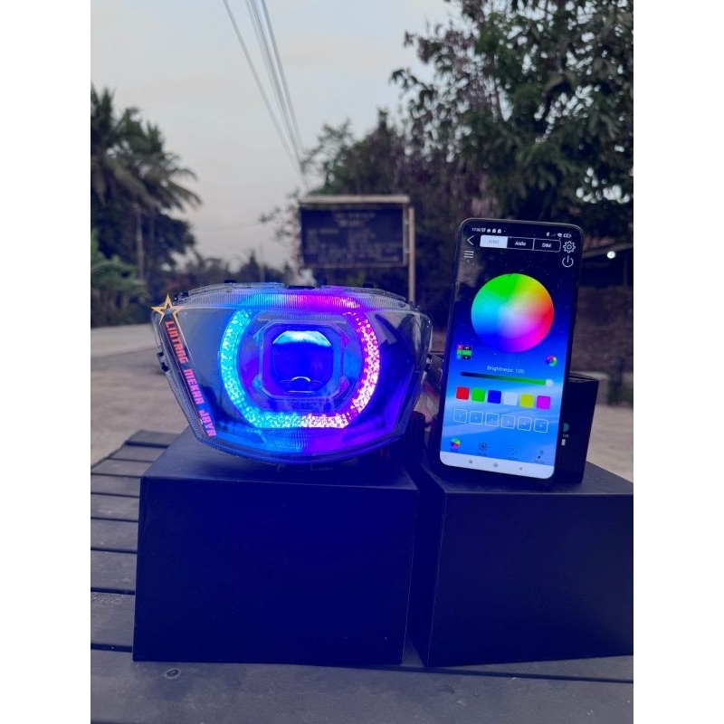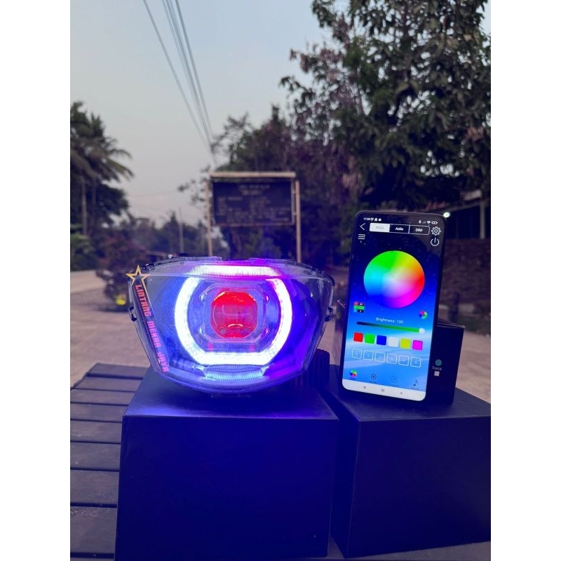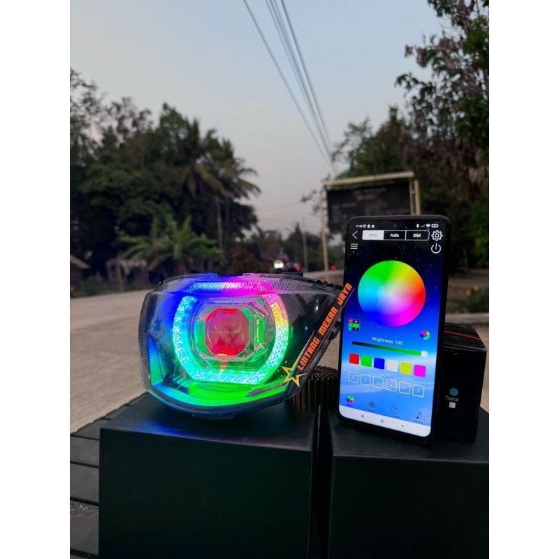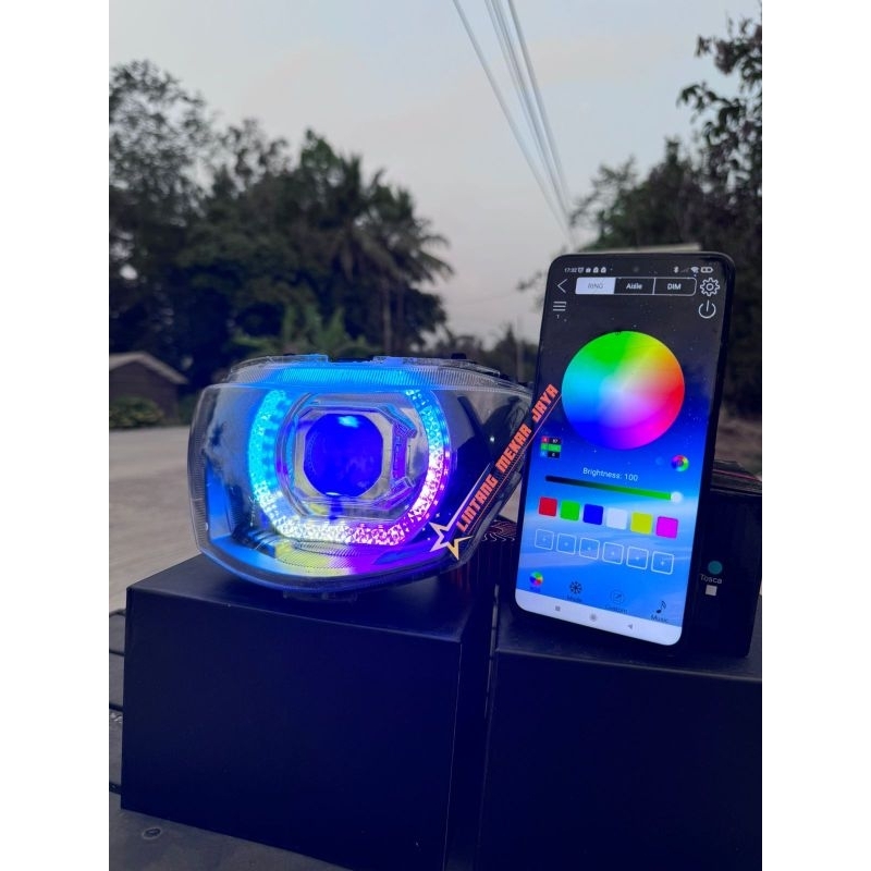 LAMPU UTAMA BILED MATRIX RGB MIO J MIO GT RING AKRILIK 4'5 SETELAN LEWAT APLIKASI