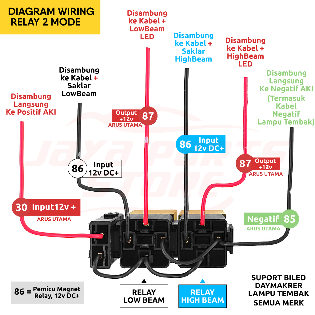 BARU Relay Untuk Lampu Biled Daymaker - Lampu Tembak D2 Laser - Relay 4 Kaki 12v 80A Tembaga - Riley 4 Pin