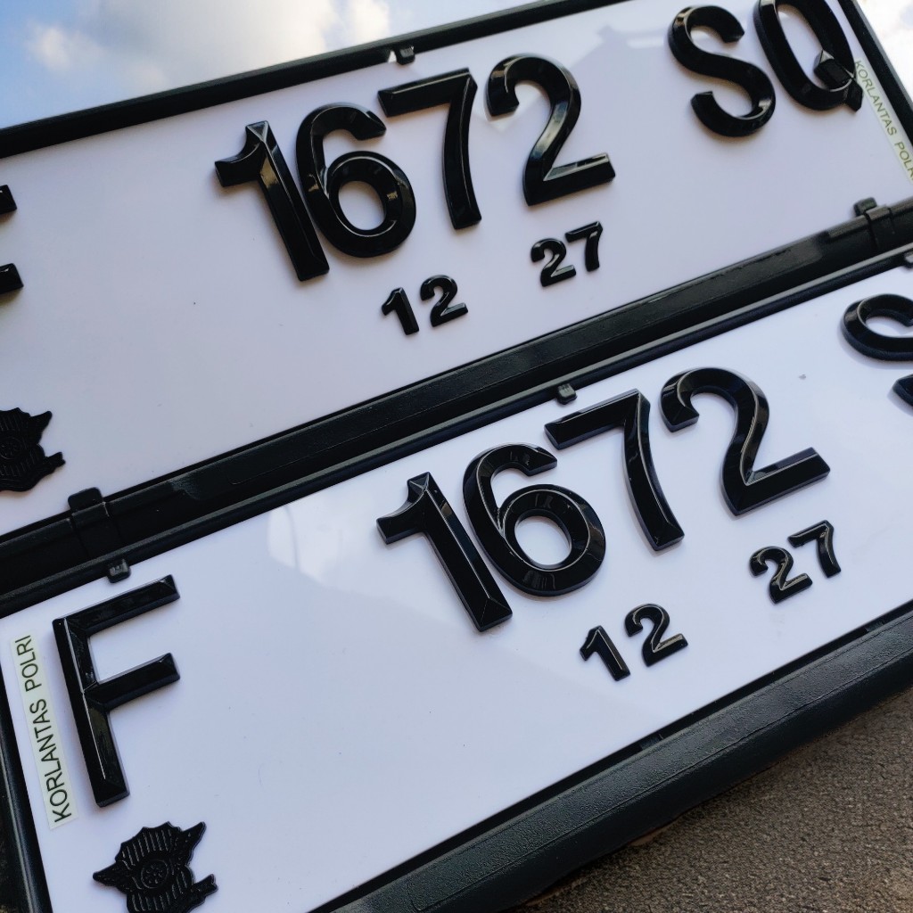 Plat Nomor Mobil Putih Timbul Mewah - Variasi Lancip Akrilik