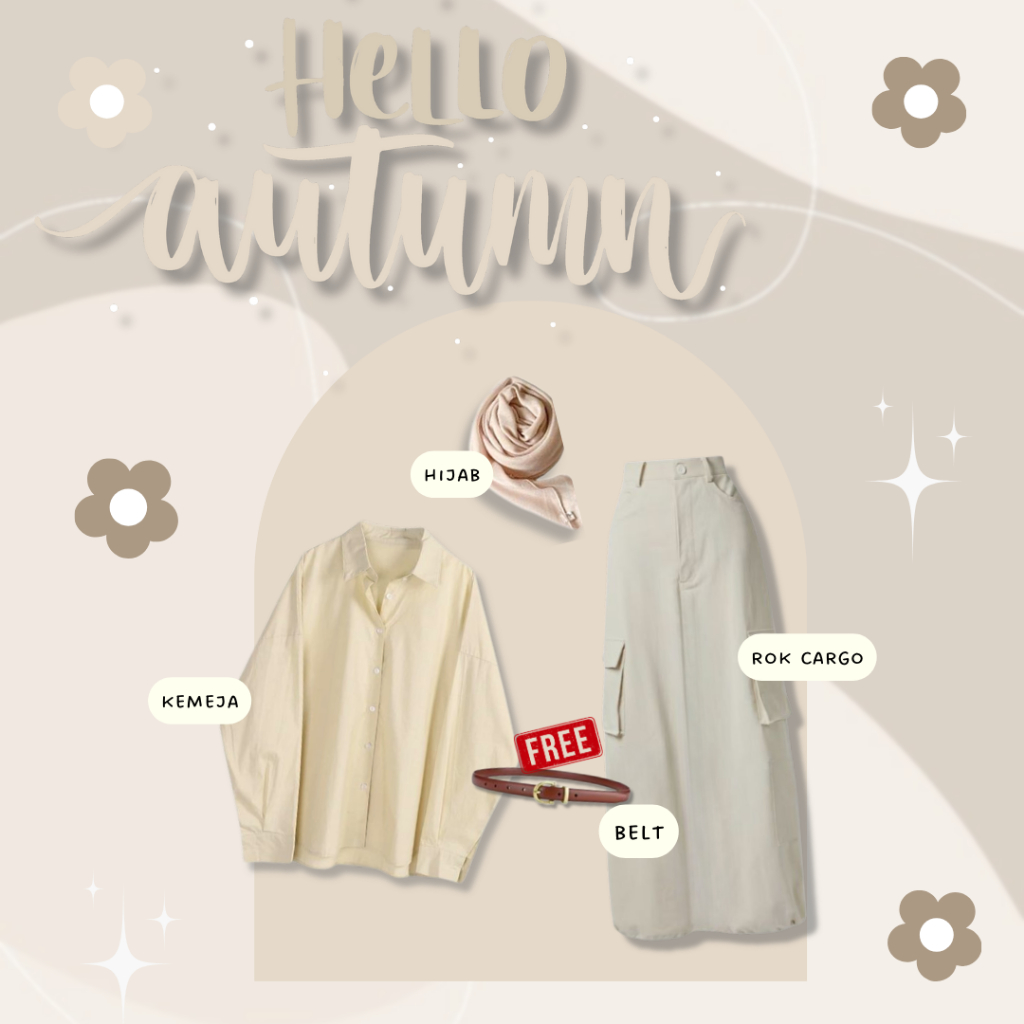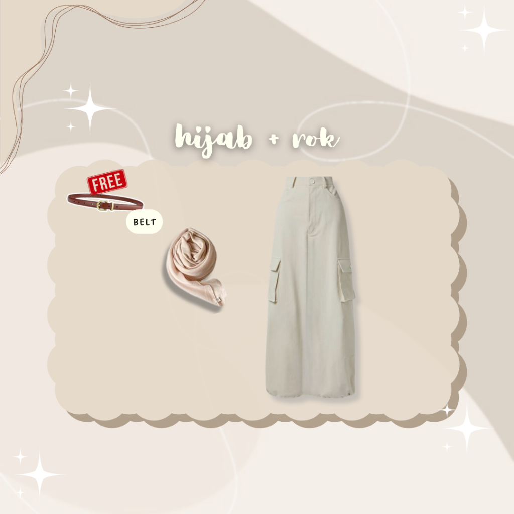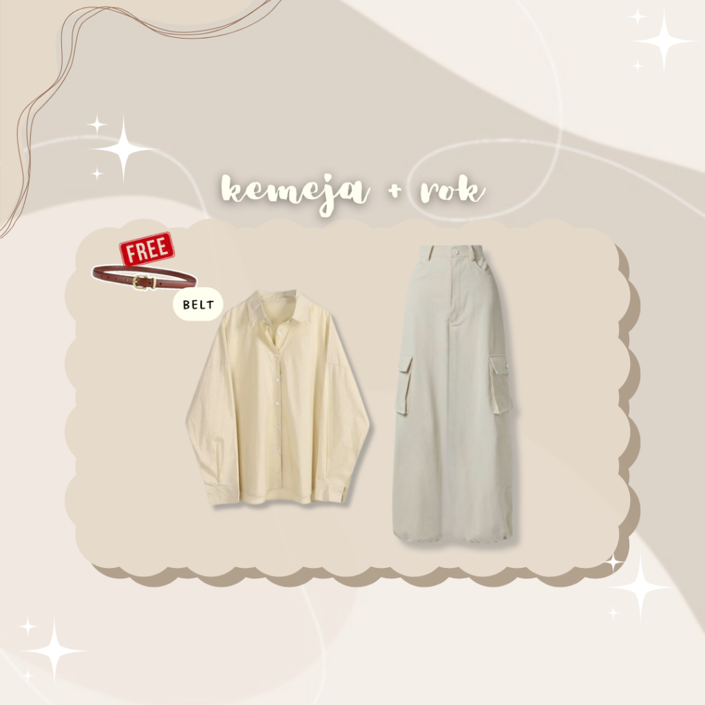 One Set Wanita Korean Style Hijab + Kemeja + Rok OOTD Anak Remaja Kekinian - LO05