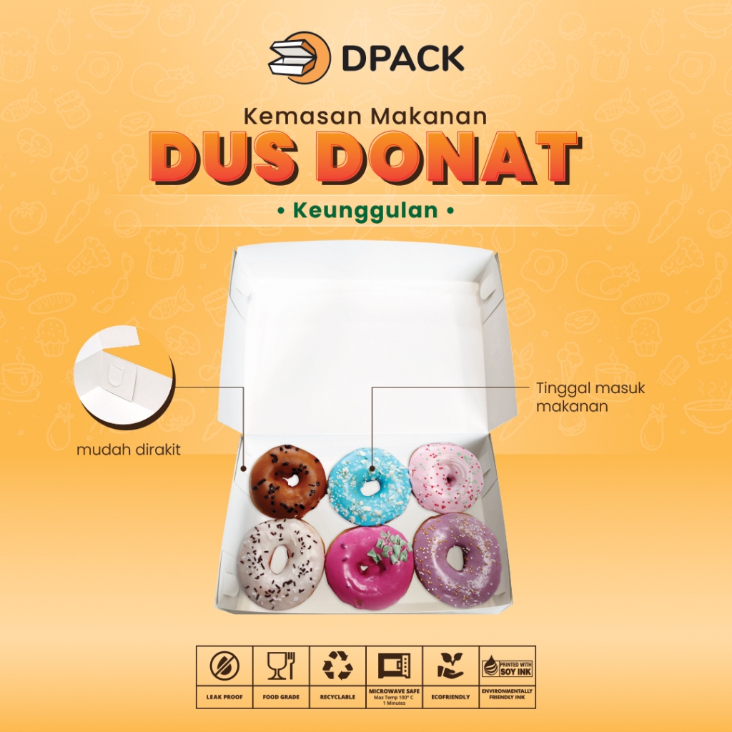 BOX DONAT ISI 6 PCS | DUS DONAT MOTIF | Kkuning mengkilapAN DONAT BAHAN IVORY
