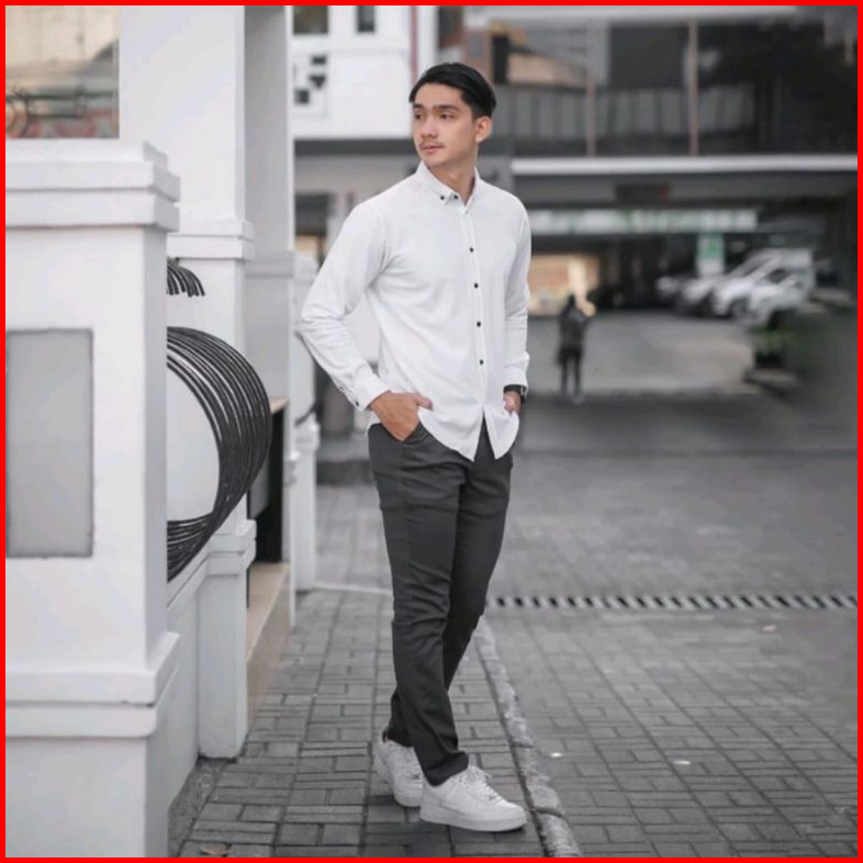 Kemeja Pria Putih Tulang Lengan Panjang Coll Mans