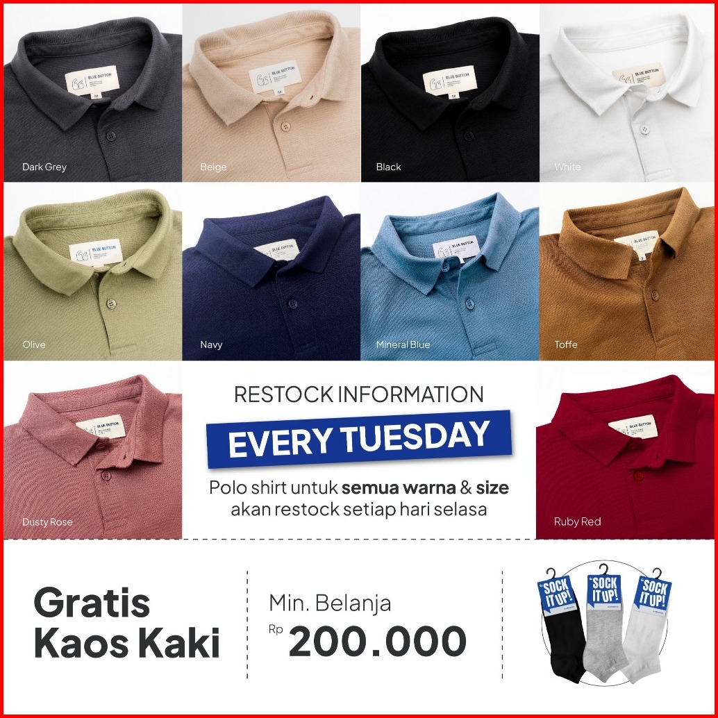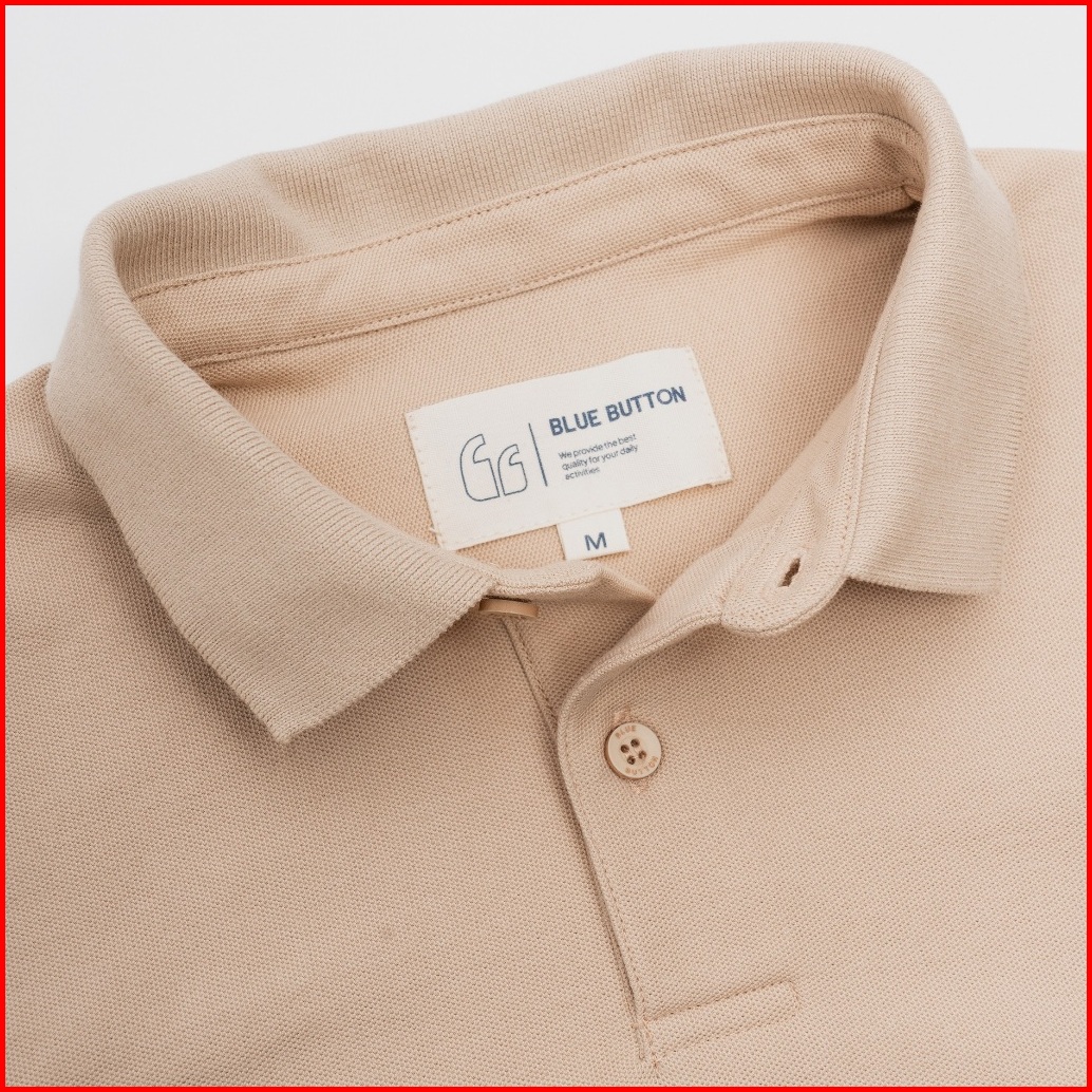 Bluebutton Polo Shirt Pria Beige Khaki Coklat Muda