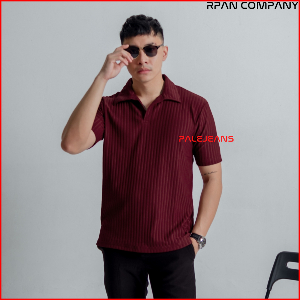 Polo Shirt Knit Pria Korean Knit Baju Polo Shirt Pria Salur Besar Cutting Slimfit Top Polo Pria Premium Baju Berkerah Pr