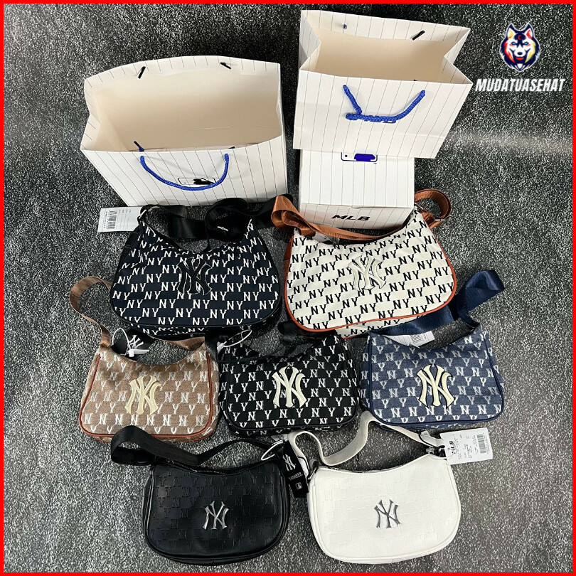 Mlb Ny Jacquard Hobo Bag Monogram Slingbag Tas Bahu Tas Selempang Tas Wanita Tas Pergi Slingbag Tas Anak Ny Mlb