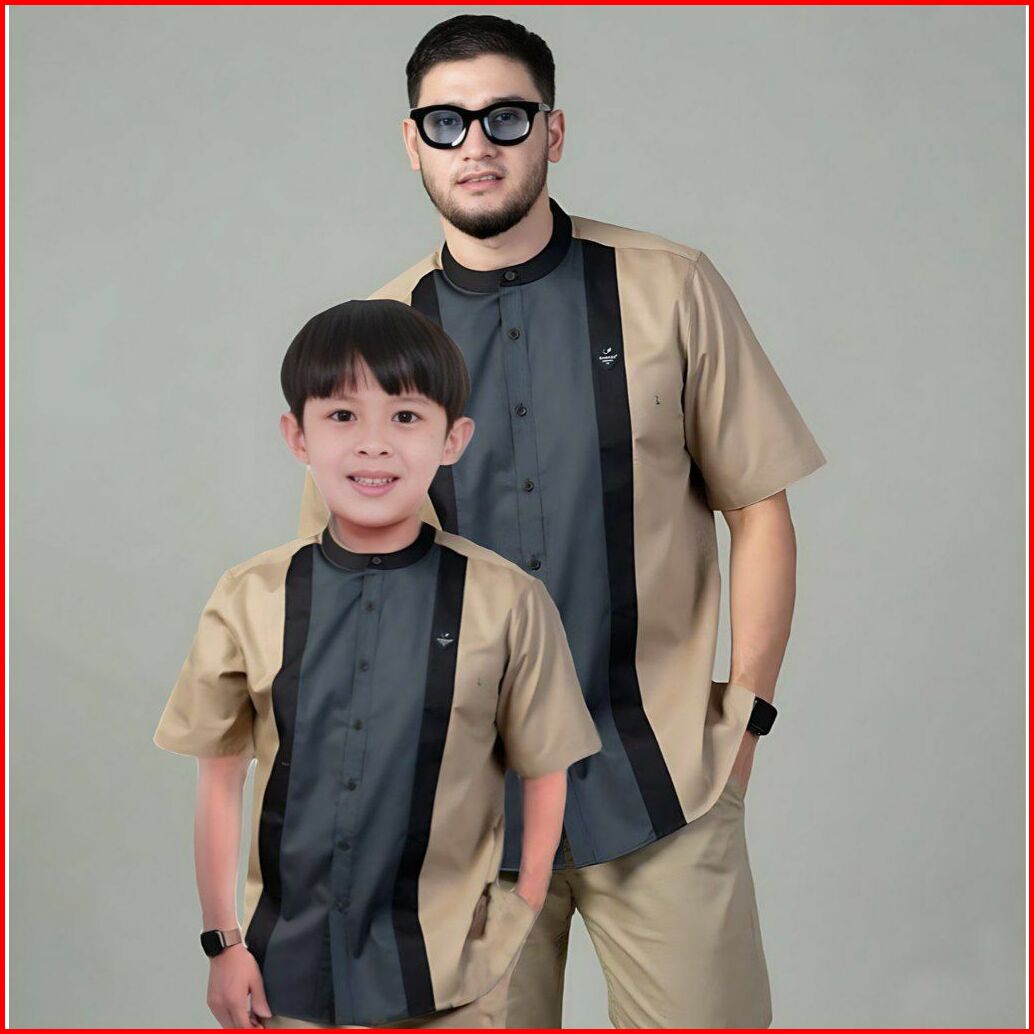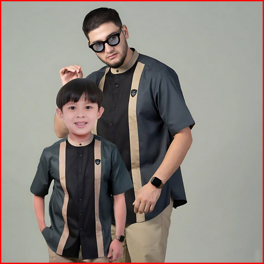 Baju Koko Couple Ayah Dan Anak Laki Laki Harga Terpisah Kemeja Kurta Kerah Mandarin Lengan Pendek Bahan Toyobo Seragam H