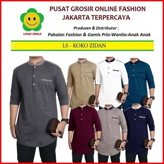 Koko Zidan - Logo Smile Ls - Ukuran S-3xl - Matt Katun Toyobo - Baju Koko Qurta Pria - Baju Koko Atasan Pria