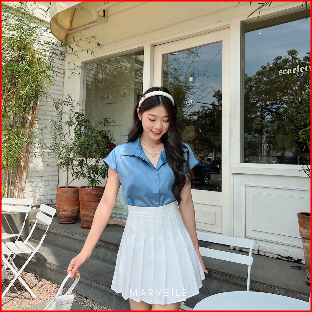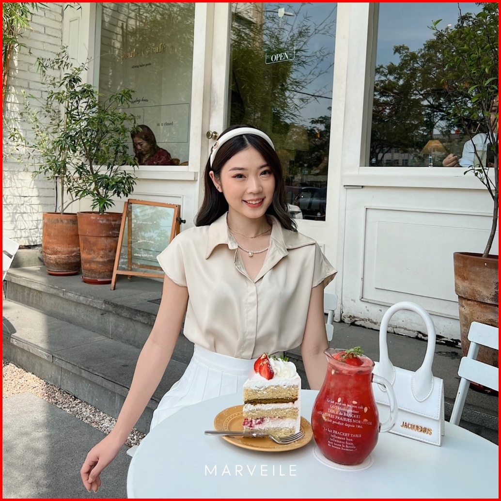 Marveile Lara Shirt Top Kemeja Top Satin Wanita - Free Necklace