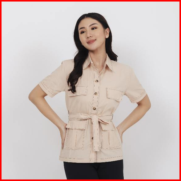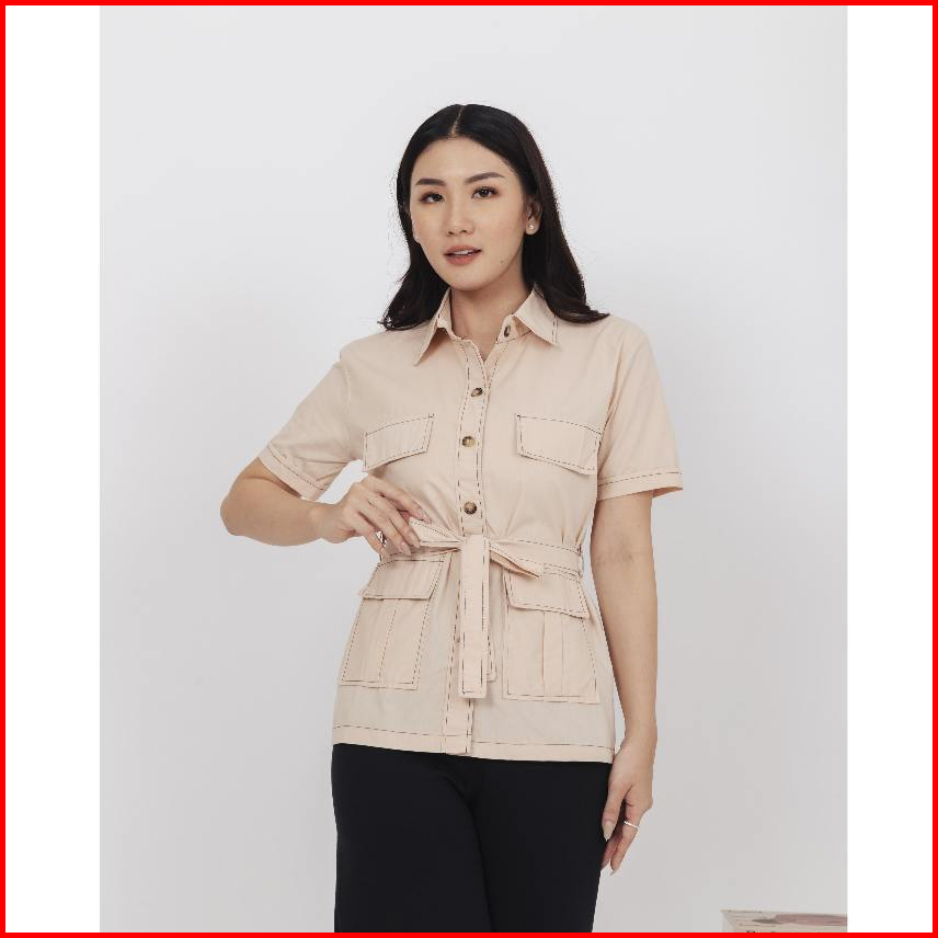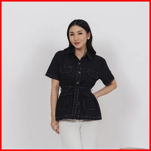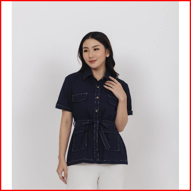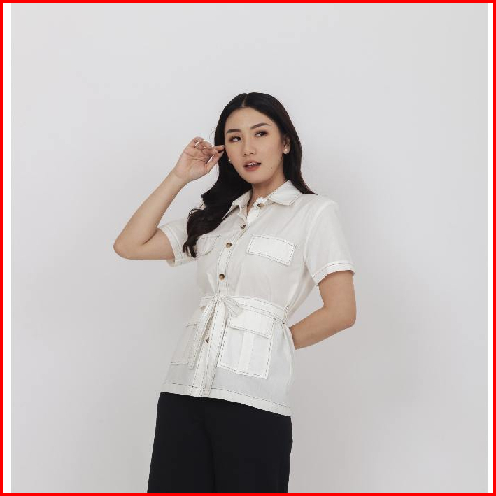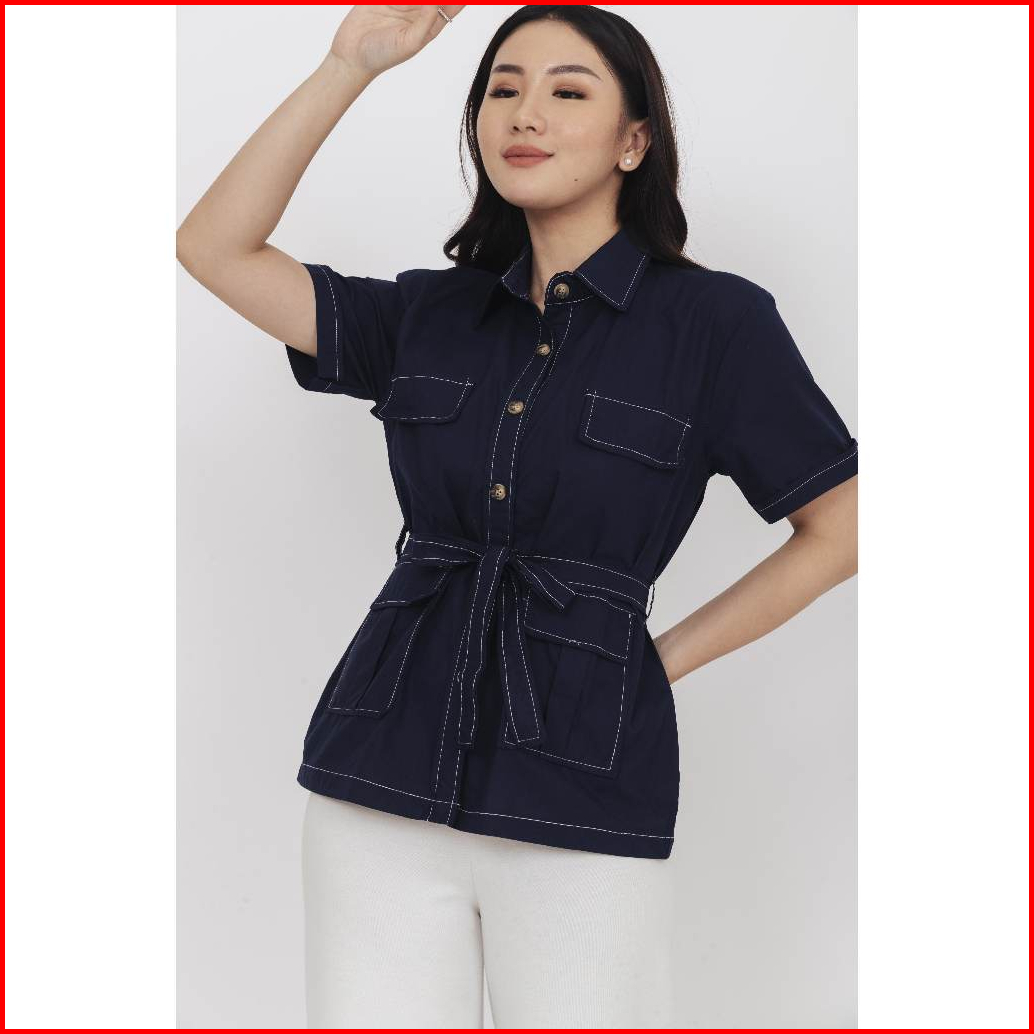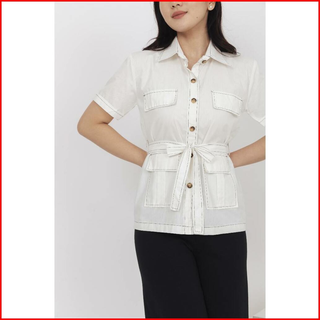 Duvelle Harlow Contrast Stitch Shirt Premium Cotton Shirt Kemeja Wanita Katun Atasan Wanita Premium