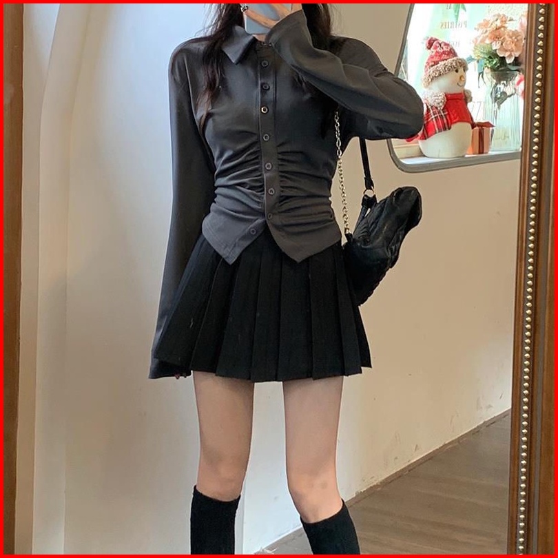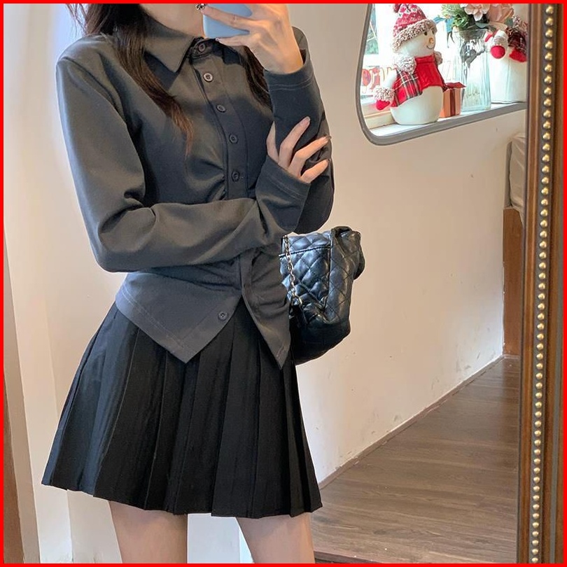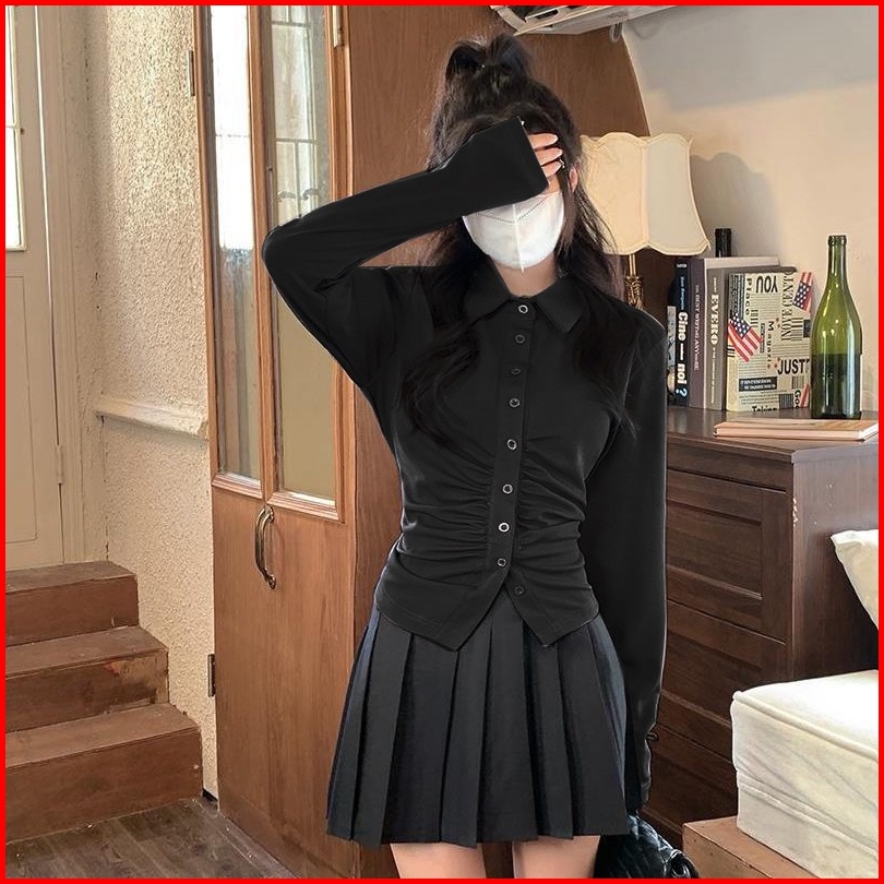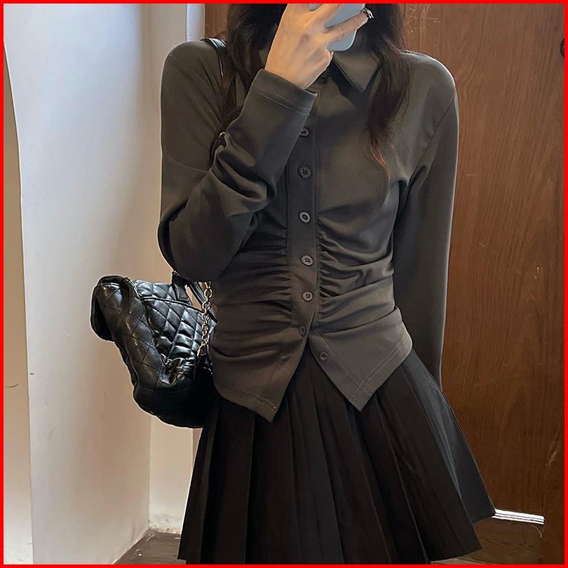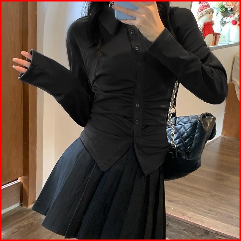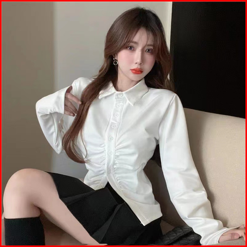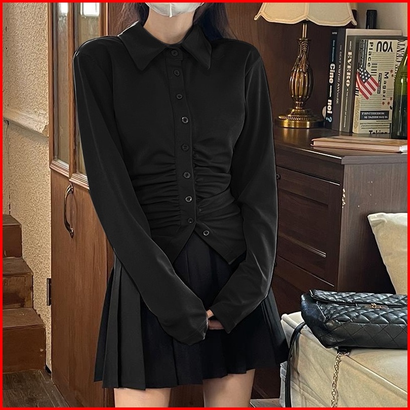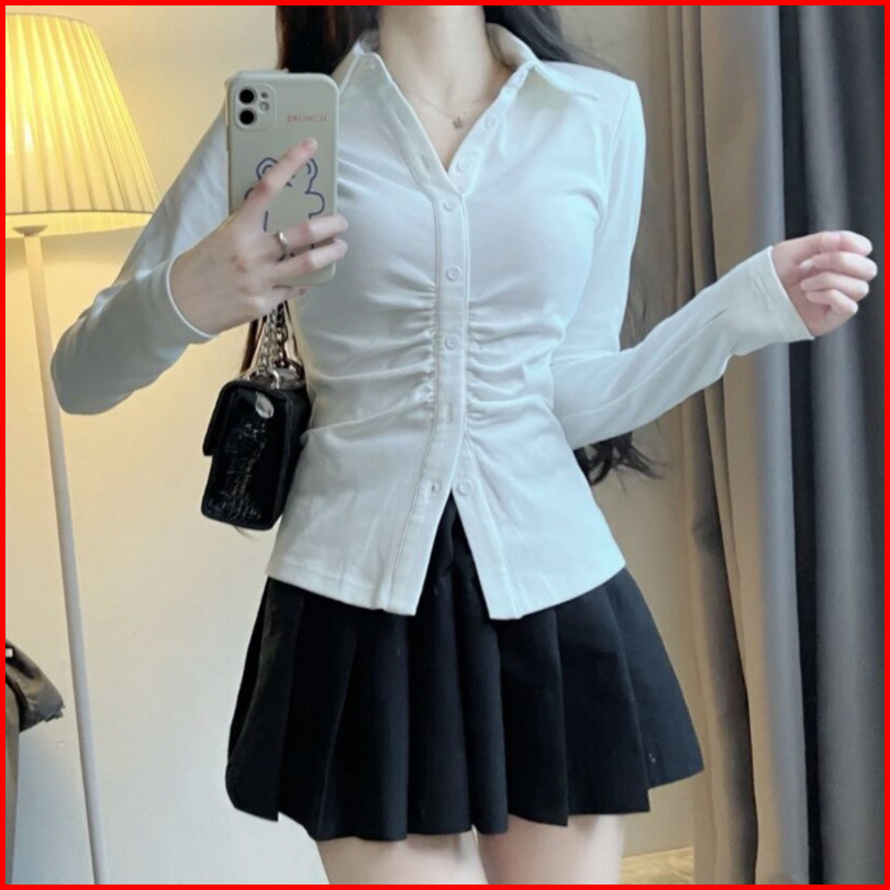 Moogu Kemeja Korea Lipatan Seksi Shirt Atasan Blouse Wanita