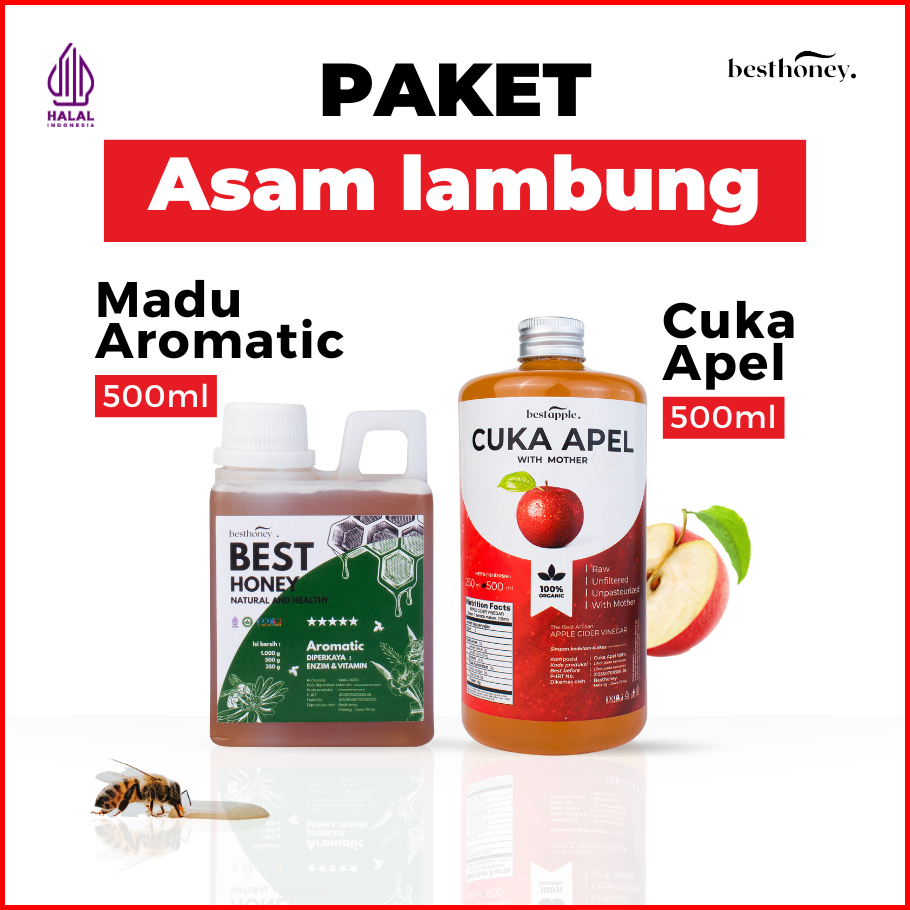 Paket Bundling Diet Sehat - Paket Asam Lambung - Cuka Apel 500 Ml Madu Aromatic 500 Gr
