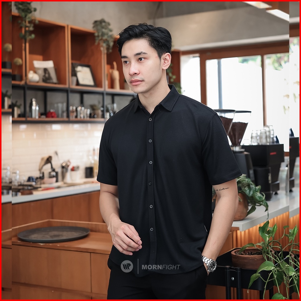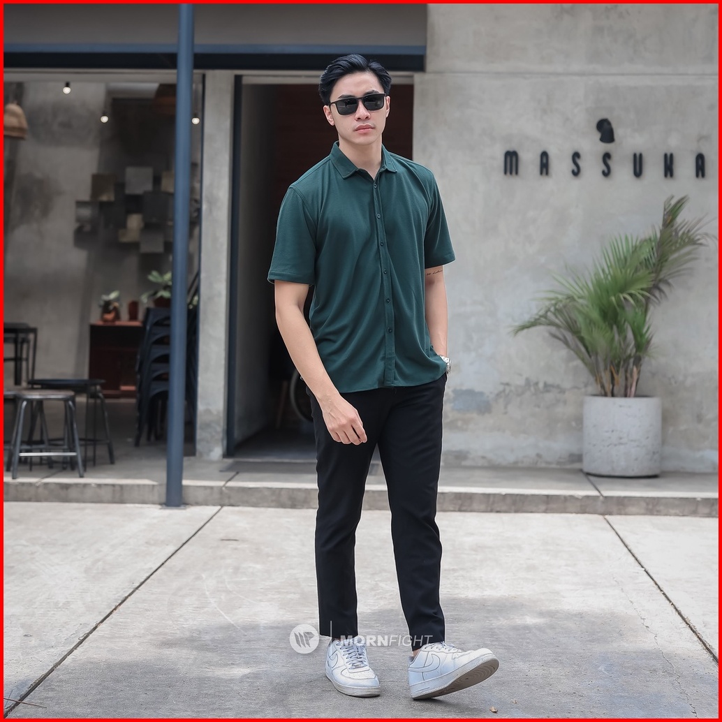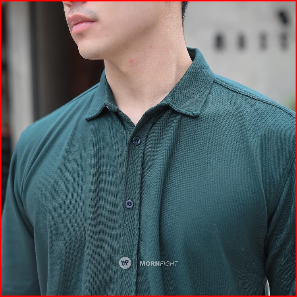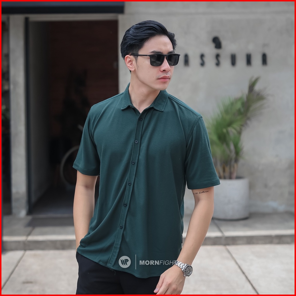 Mornfight - Kemeja Pique Pria Lengan Pendek Casual Bottle Green